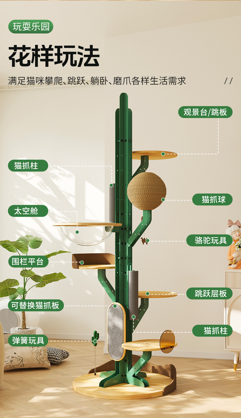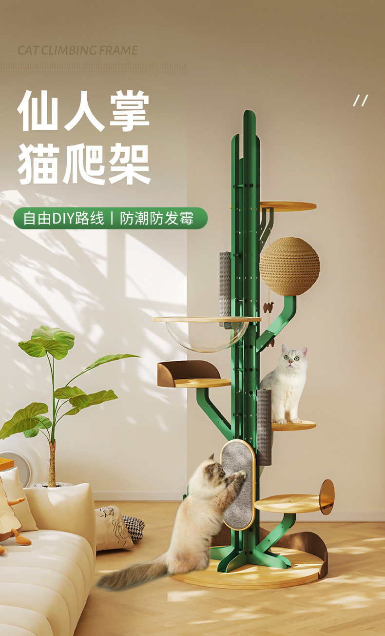 북유럽 선인장 고양이 등반 랙 대형 단철 단단한 나무 가정용 고양이 둥지 고양이 나무 통합 점유 창조적 인 매우 간단한스토어 가기