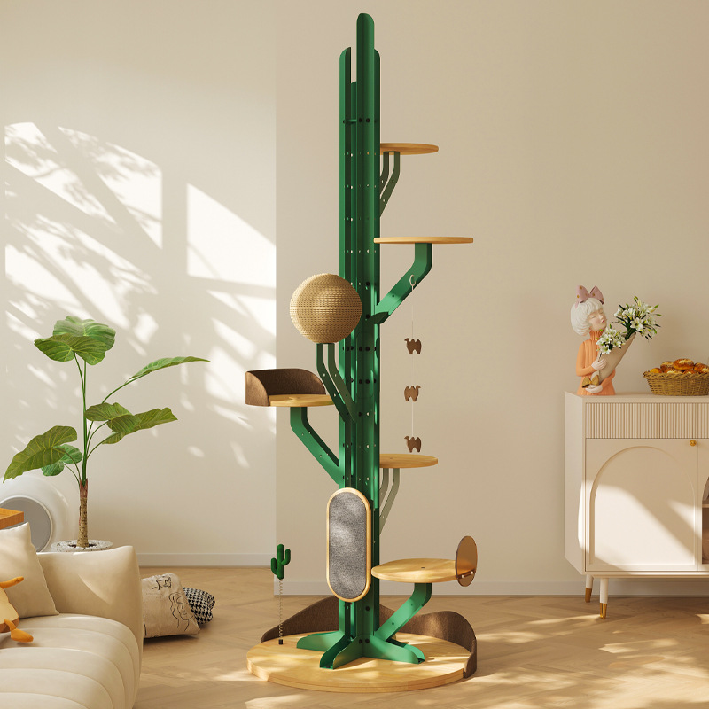북유럽 선인장 고양이 등반 랙 대형 단철 단단한 나무 가정용 고양이 둥지 고양이 나무 통합 점유 창조적 인 매우 간단한