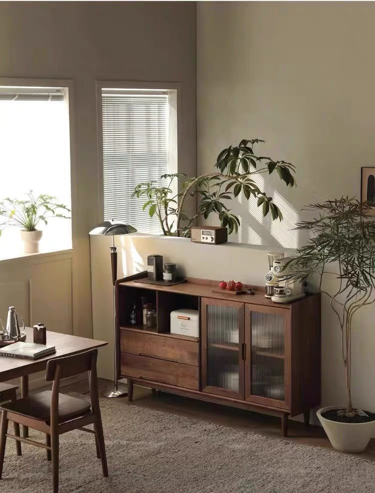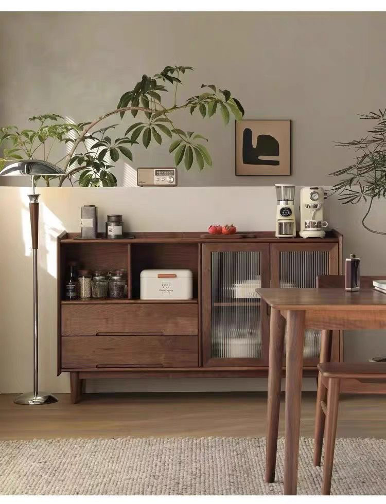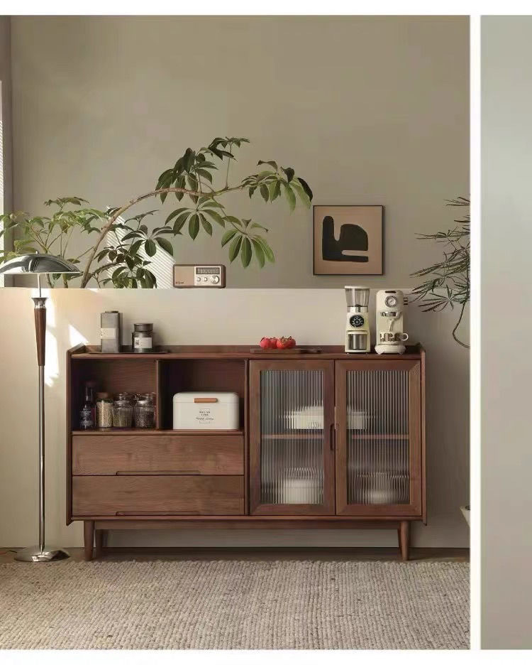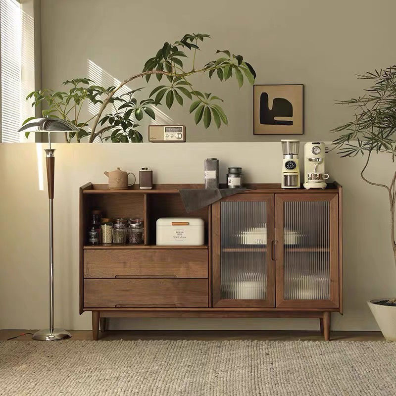북유럽 단단한 나무 식사 작은 아파트 간단한 거실 보관 캐비닛 호두 벽 주방 통합 보관 차스토어 가기
