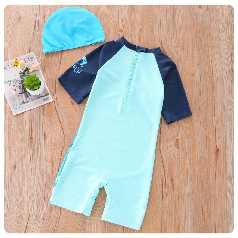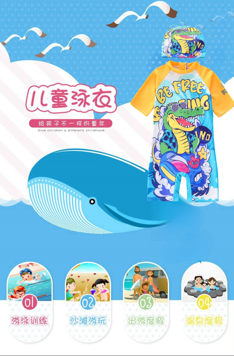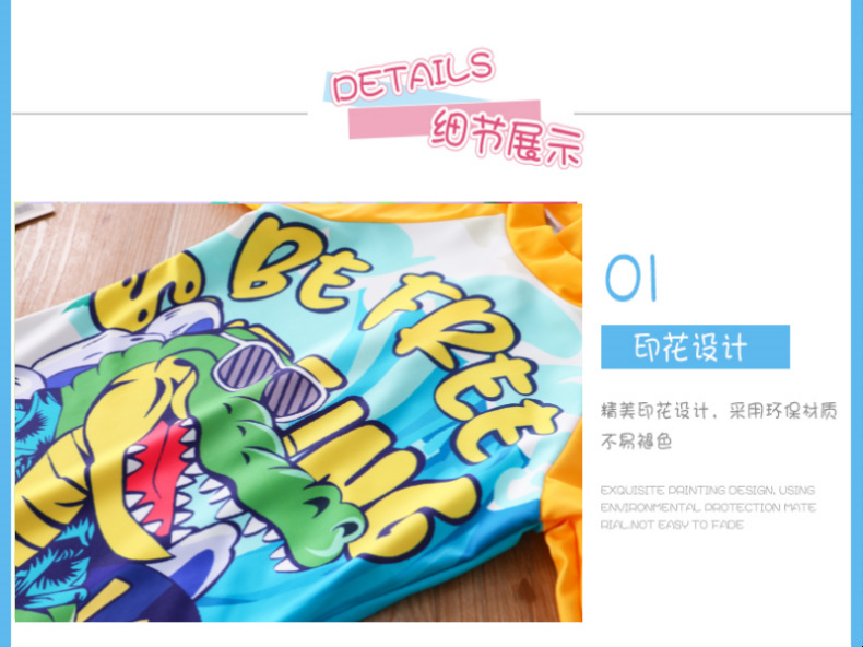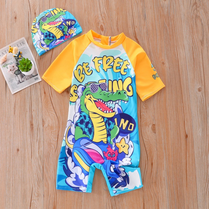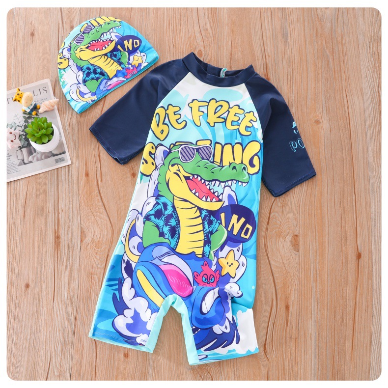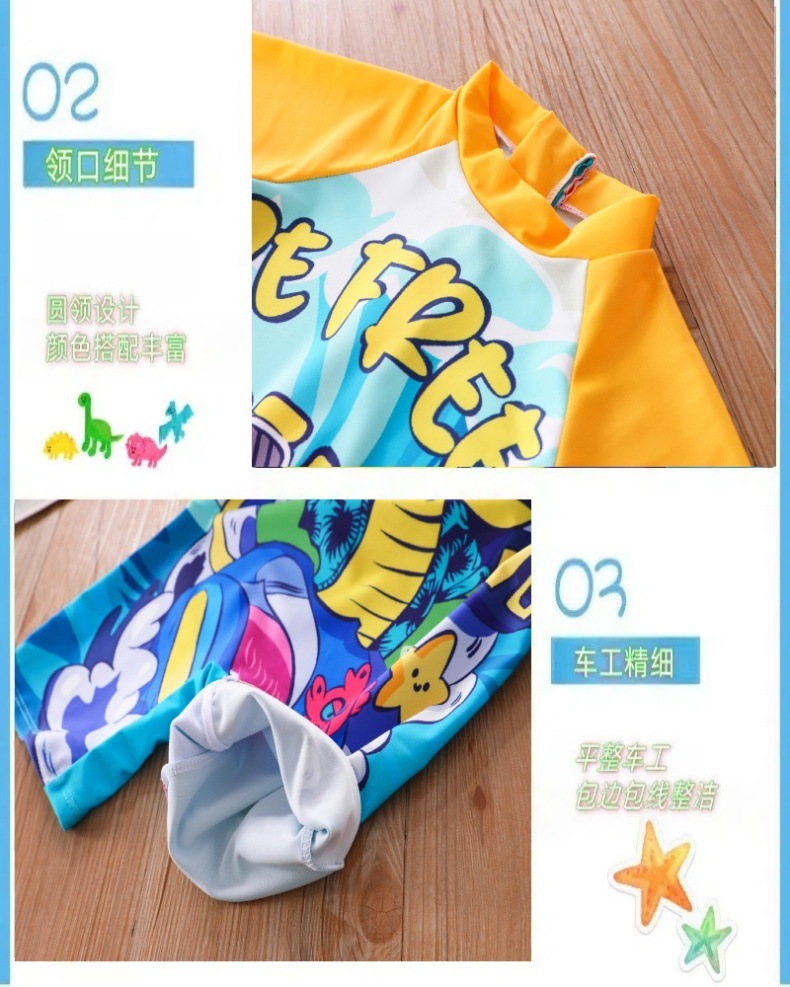 새로운 어린이 수영복 소년 원피스 중대형 어린이 수영복 어린이 만화 작은 공룡 수영복 태양 보호 UPF50
