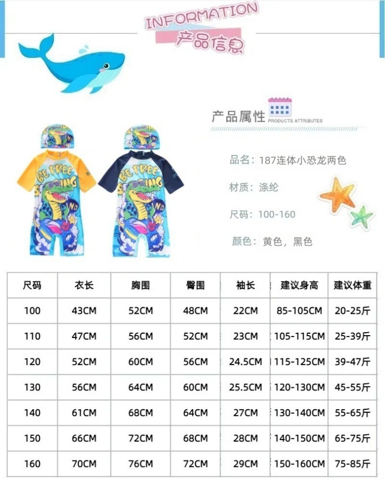 새로운 어린이 수영복 소년 원피스 중대형 어린이 수영복 어린이 만화 작은 공룡 수영복 태양 보호 UPF50스토어 가기