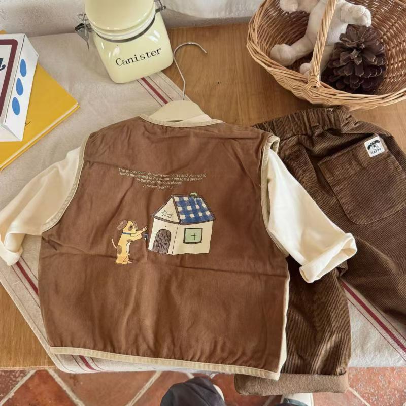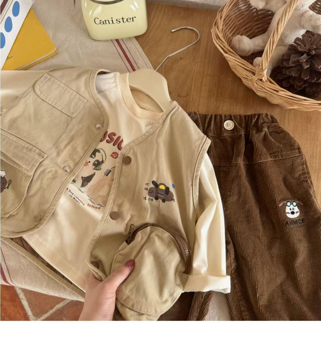 어린이 조끼 2025 새로운 봄 아기 소년과 소녀 서양식 만화 작업복 말 클립 어린이 캐주얼 조끼 유행스토어 가기