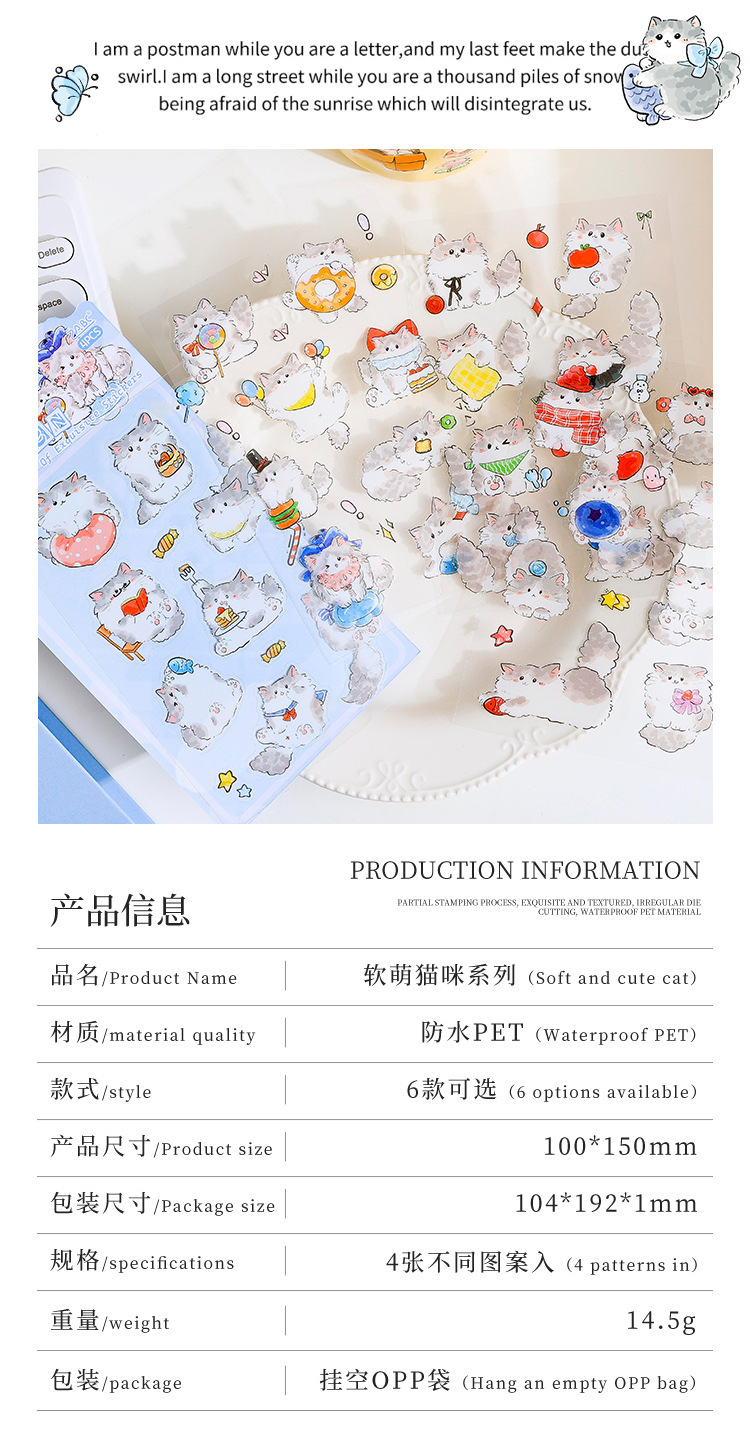 부드러운 귀여운 고양이 투명 방수 애완 동물 스티커 DIY 손 계정 일기 스티커 국경 귀여운 동물 고양이 스티커스토어 가기
