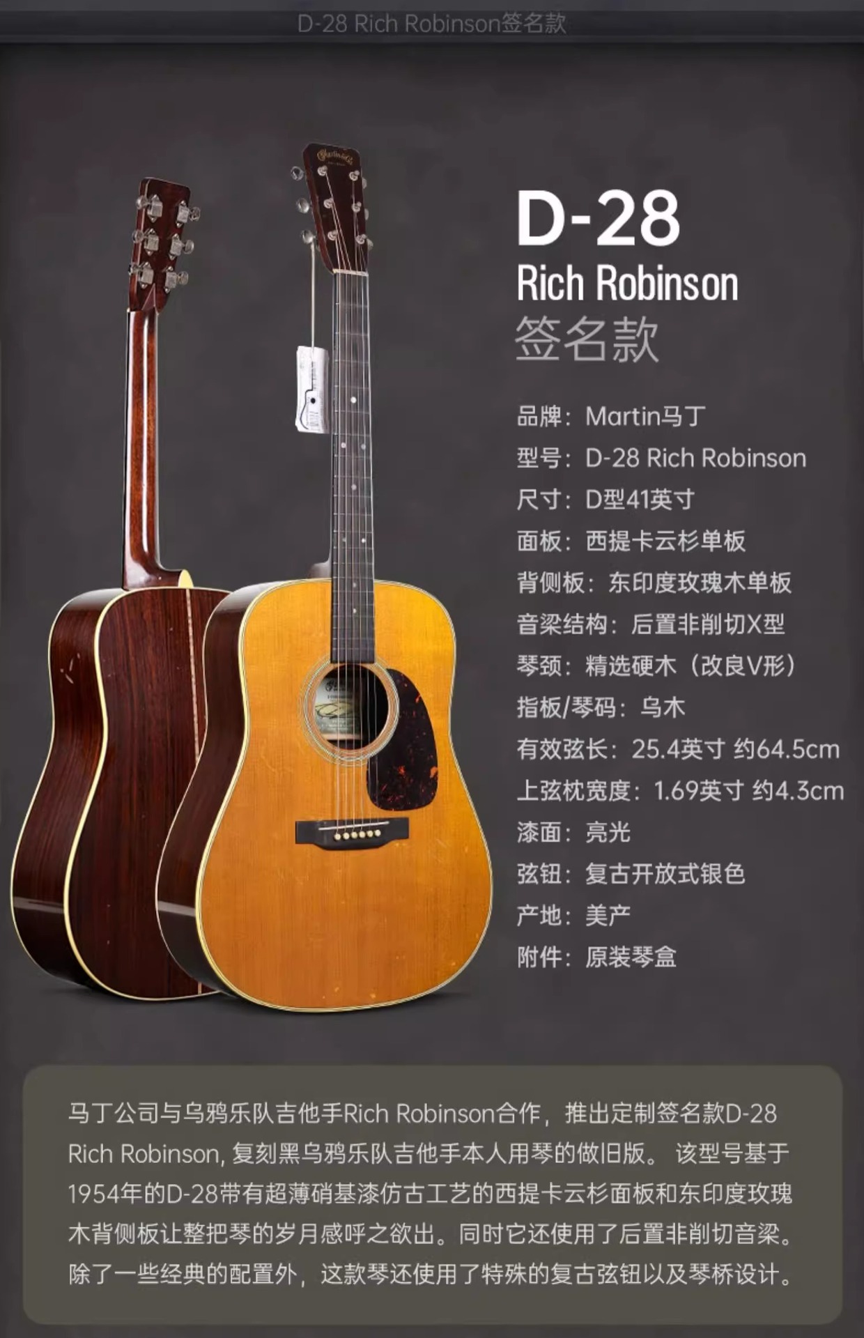 Martin D28 Rich Robinson 시그니처 올드 레플리카 미국산 풀 싱글 포크 기타스토어 가기