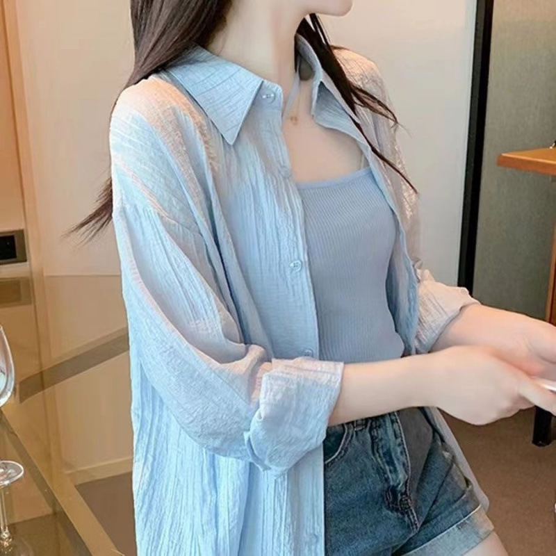 2025 년 새 여름 느슨한 카디건 경량 셔츠 탑 긴팔 재킷 셔츠 선스크린 여성용 아우터웨어스토어 가기