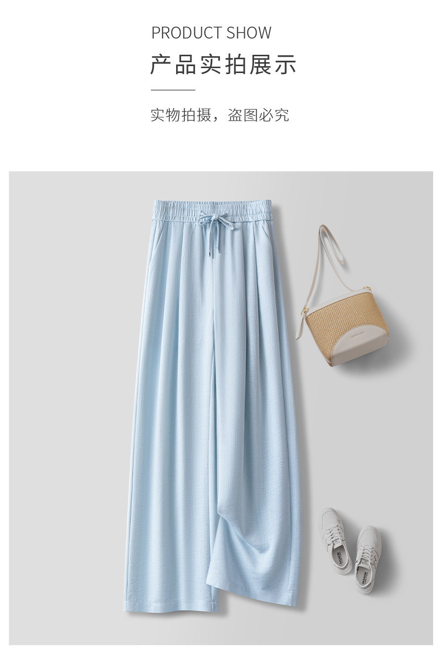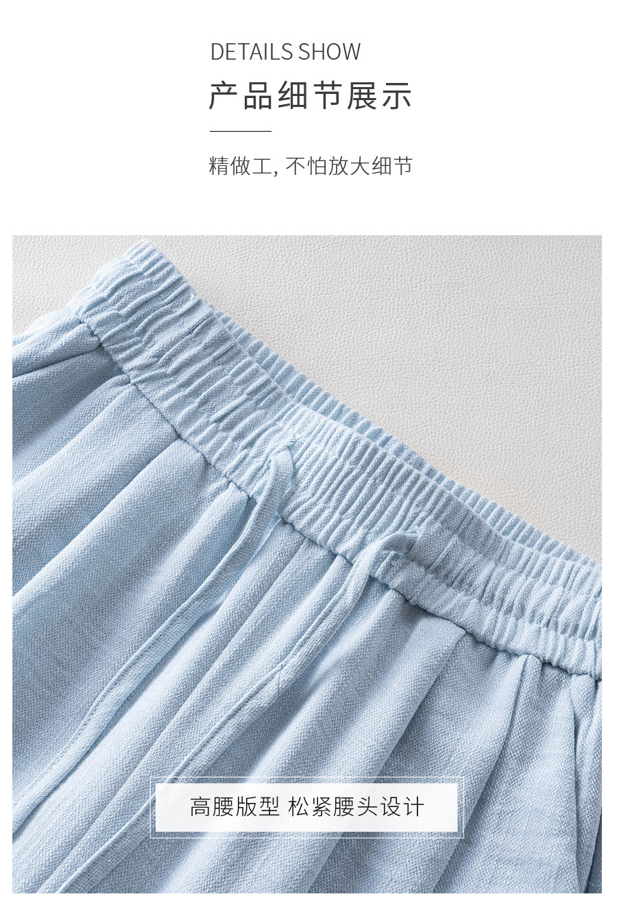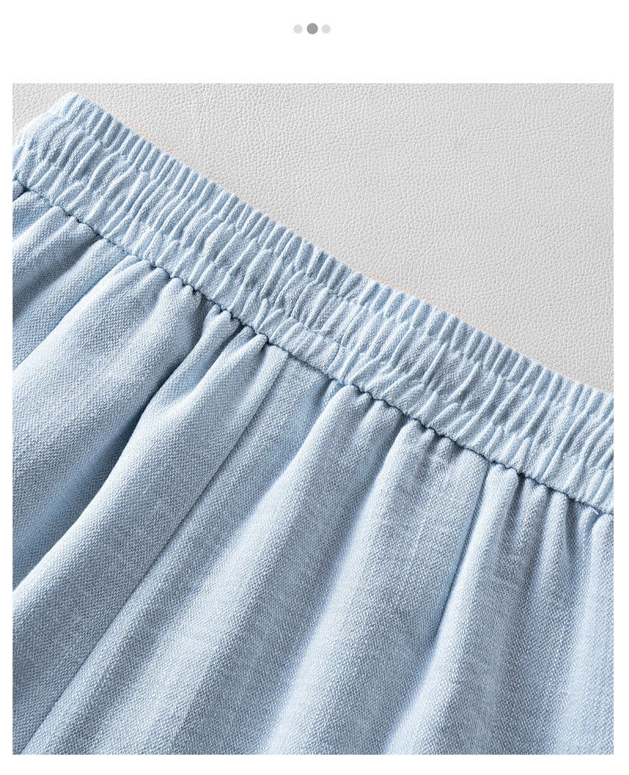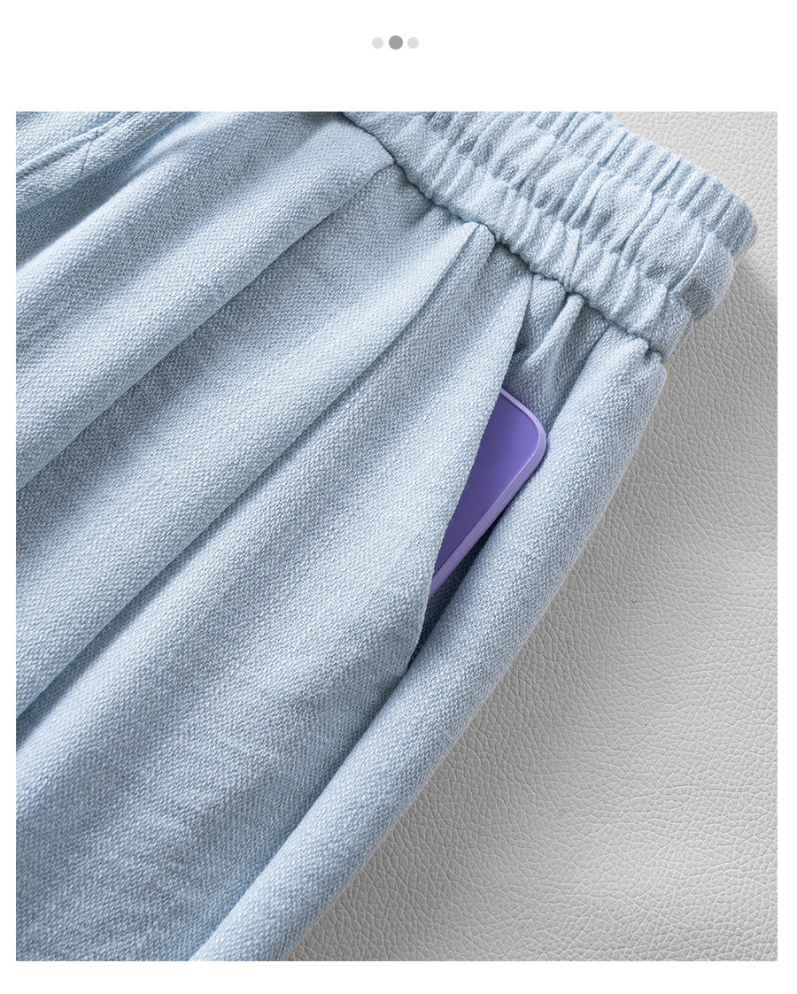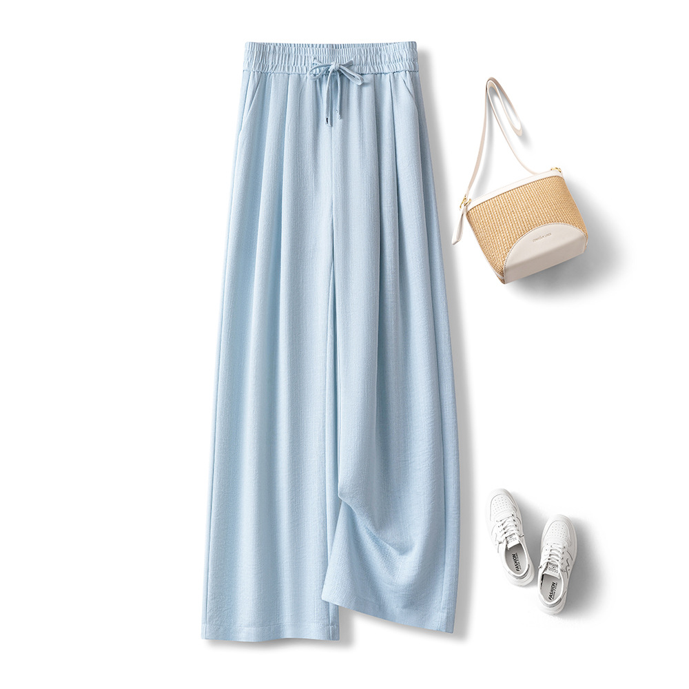 라이트 블루 느슨한 넓은 다리 바지 여자 2025 새로운 여름 통기성 리넨 캐주얼 바지 높은 허리 더미 자른 바지스토어 가기