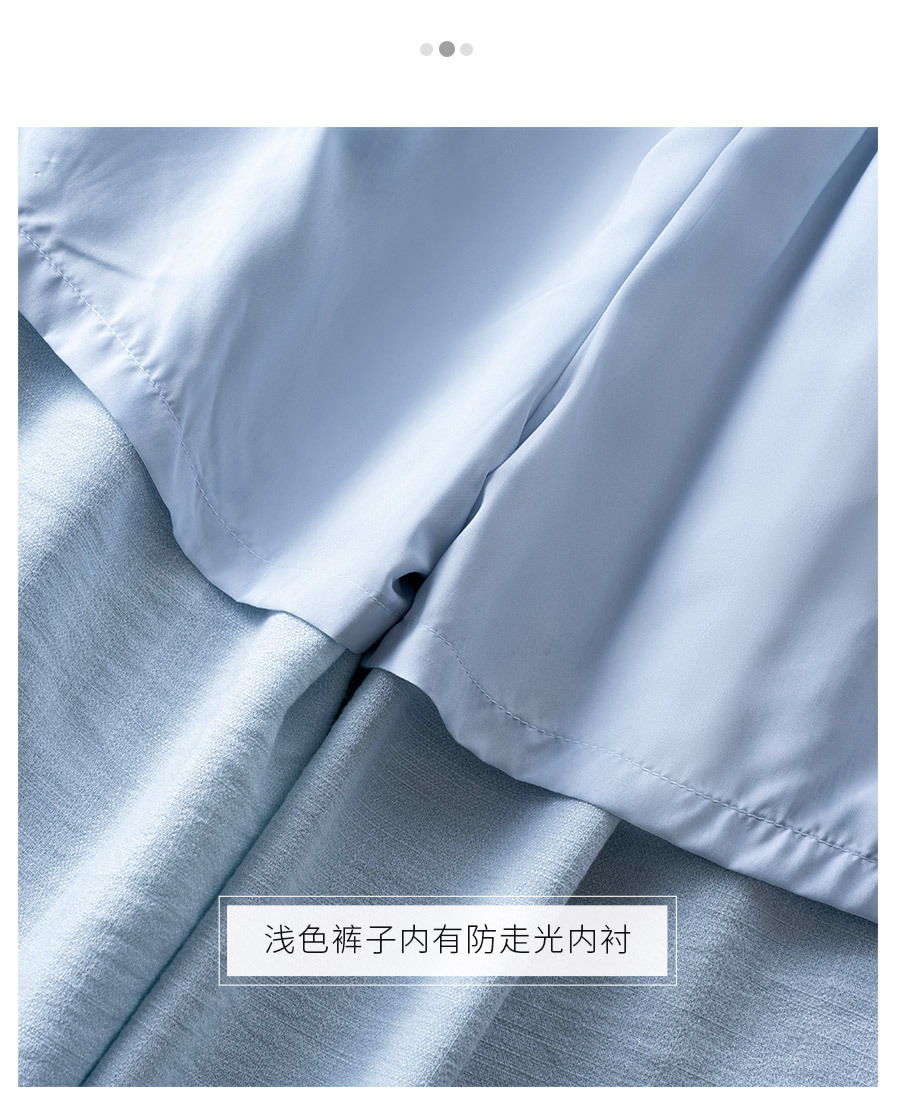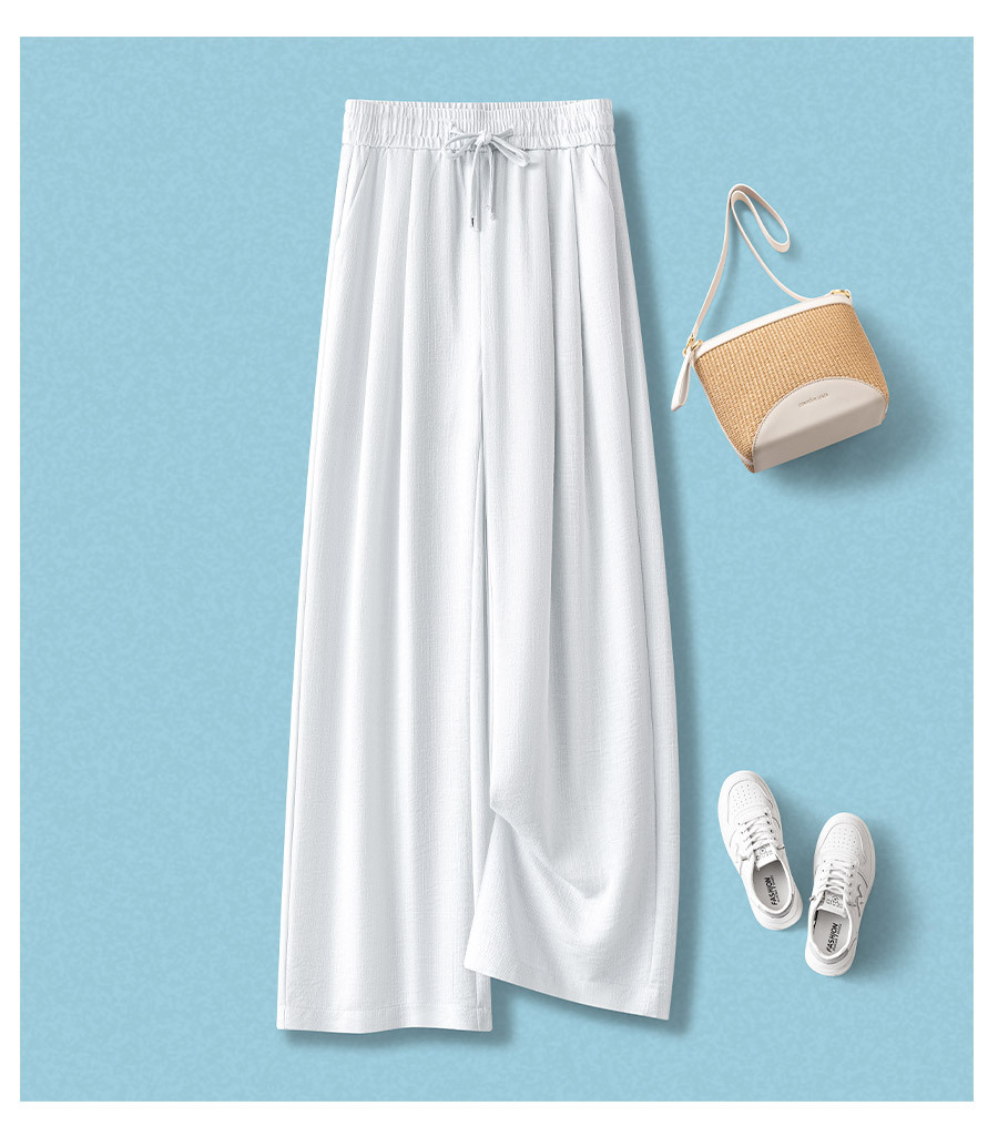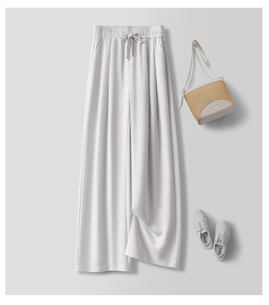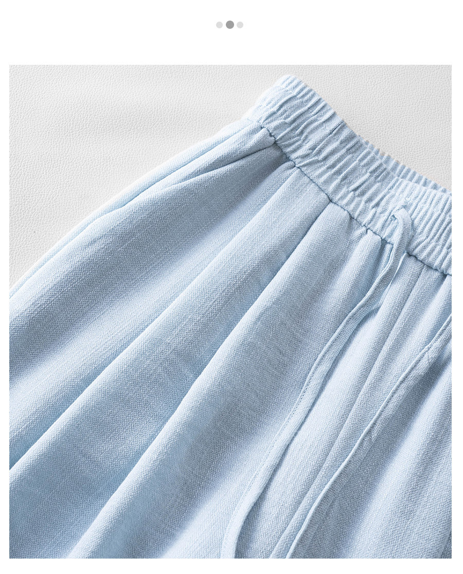 라이트 블루 느슨한 넓은 다리 바지 여자 2025 새로운 여름 통기성 리넨 캐주얼 바지 높은 허리 더미 자른 바지