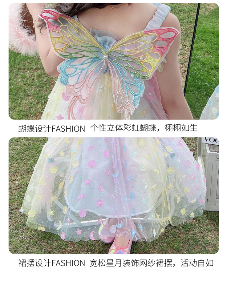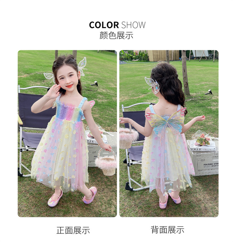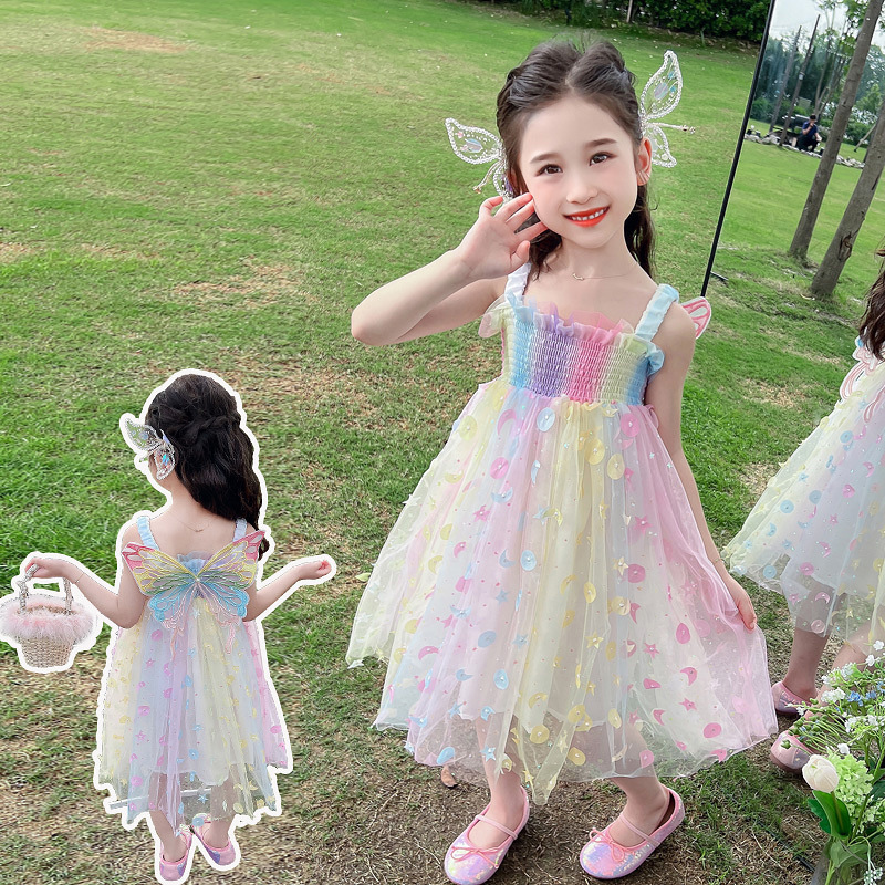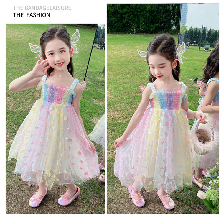 여아 드레스 거즈 스커트 여름 드레스 어린이 어린이 낭만주의 공주 드레스 아기 꿈나비 요정 무지개 스커트
