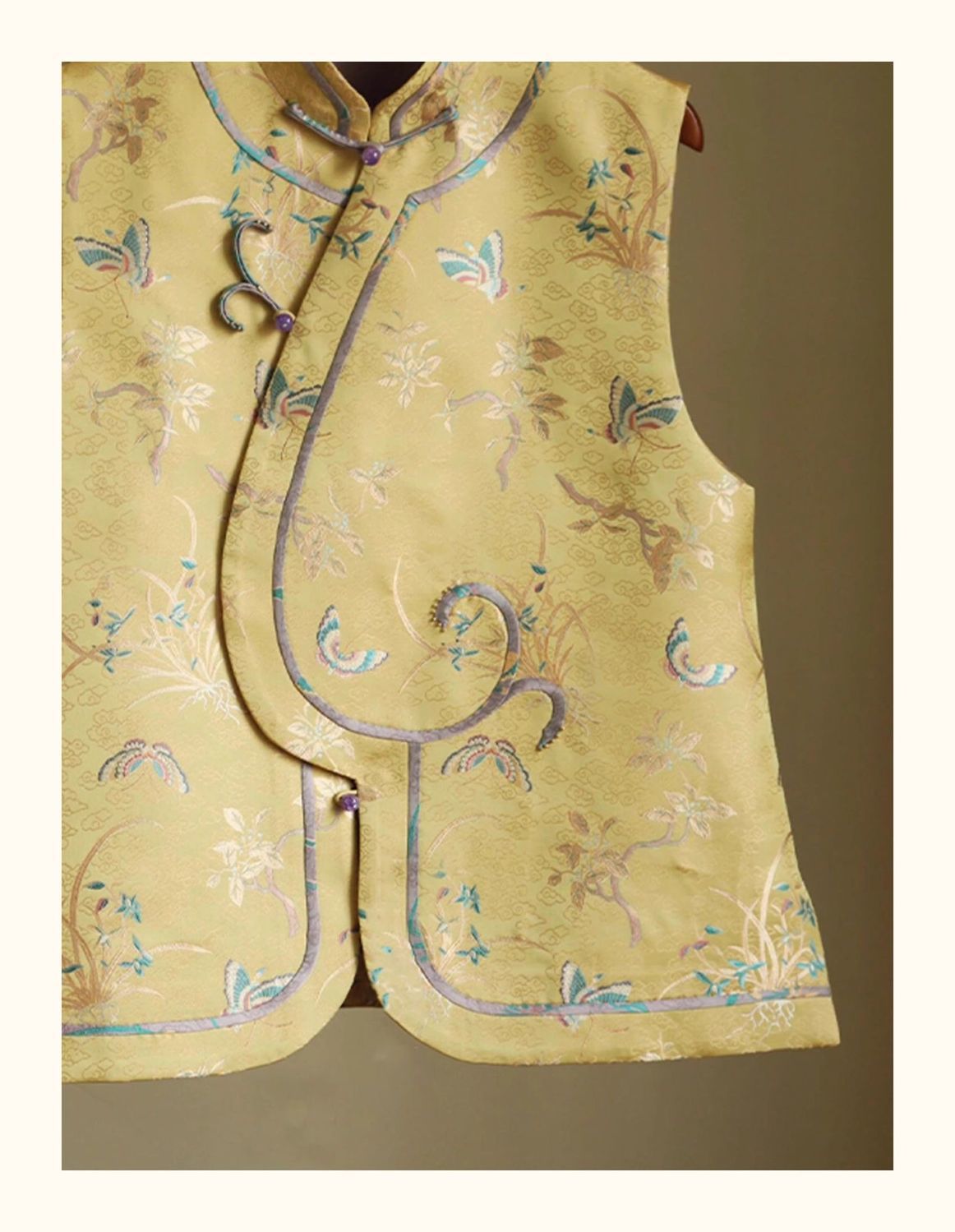 2025早春款上衣新中式国风高级感超好看小众别致设计感黄色马甲女