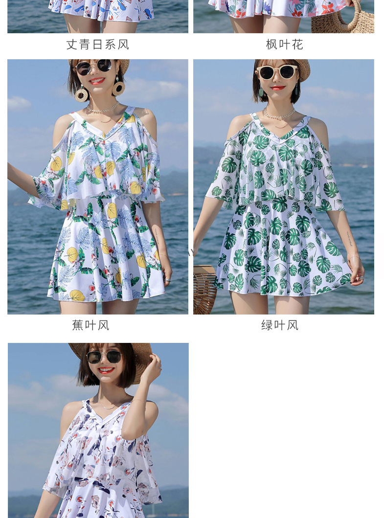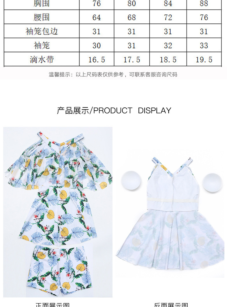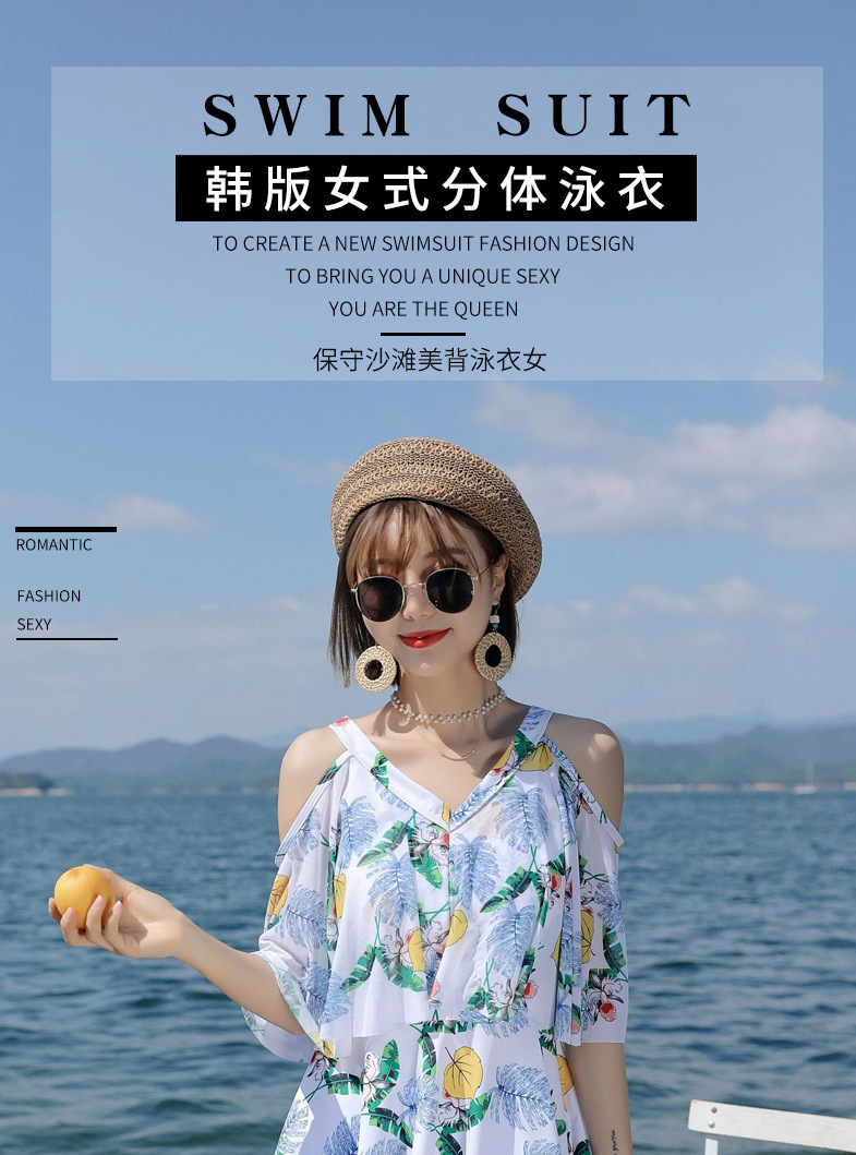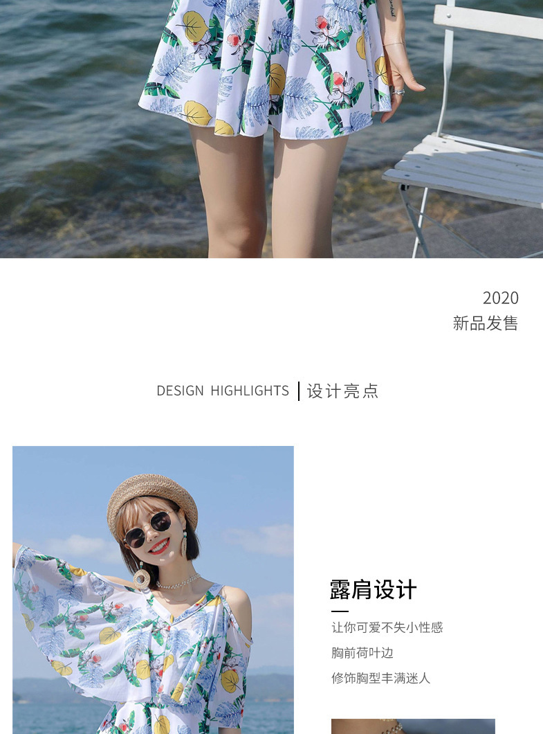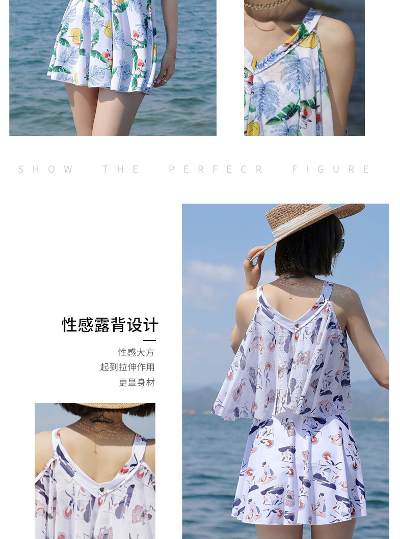 일본식 여성용 수영복 새 인쇄 된 어깨 민소매 메쉬 수영복 스커트 스플릿 바지 홀리데이 스파 수영복