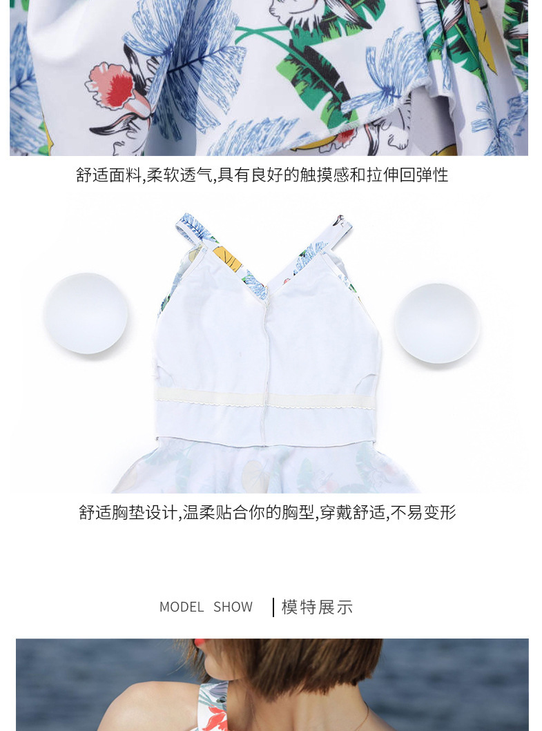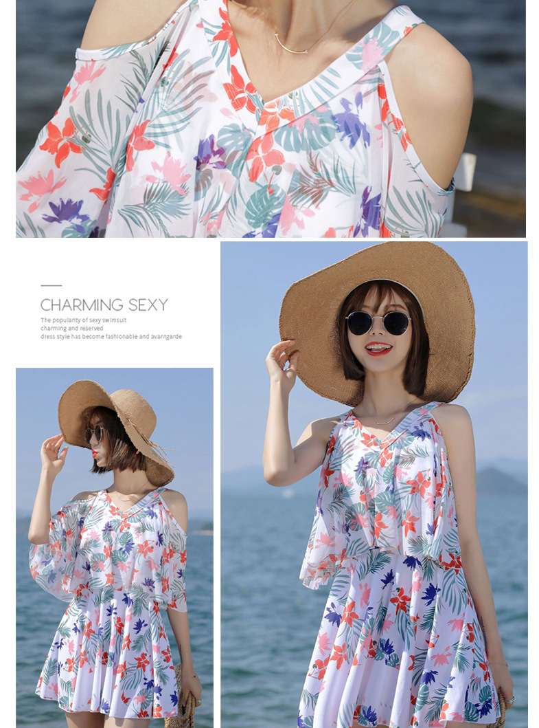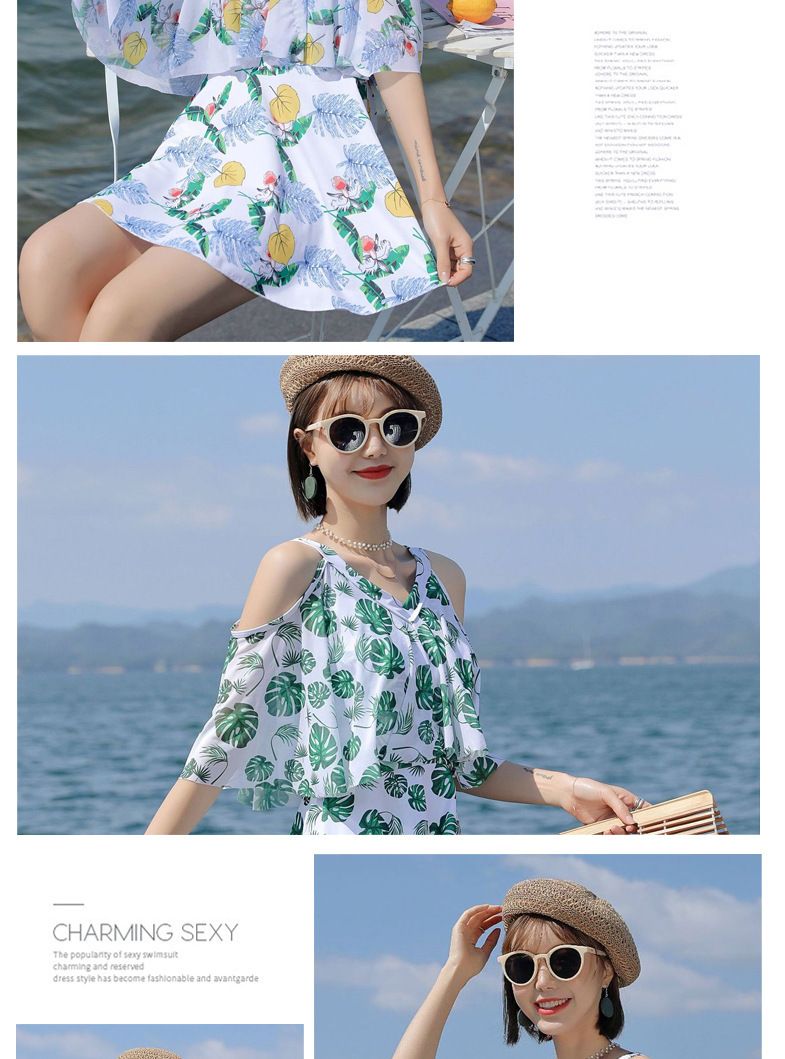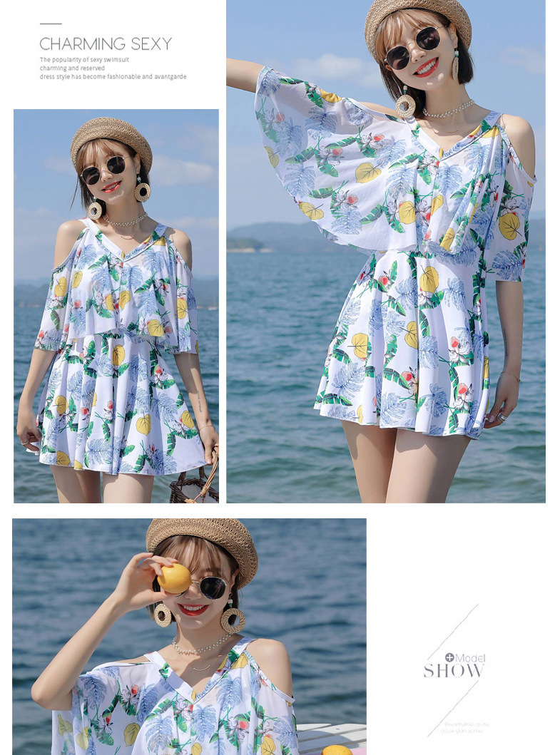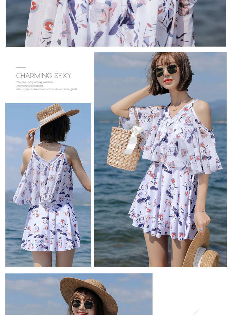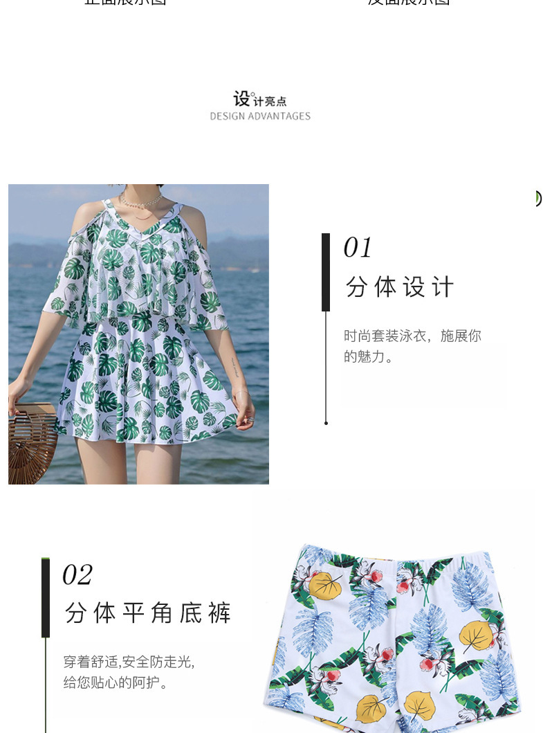 일본식 여성용 수영복 새 인쇄 된 어깨 민소매 메쉬 수영복 스커트 스플릿 바지 홀리데이 스파 수영복