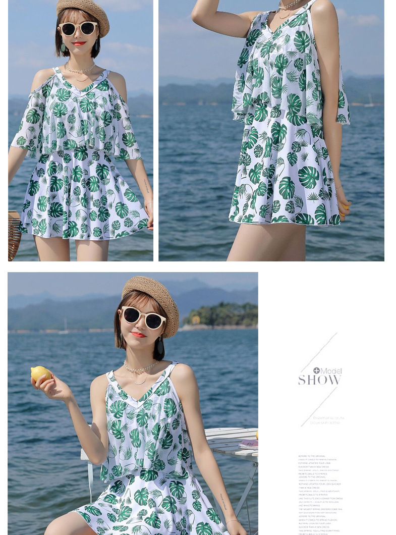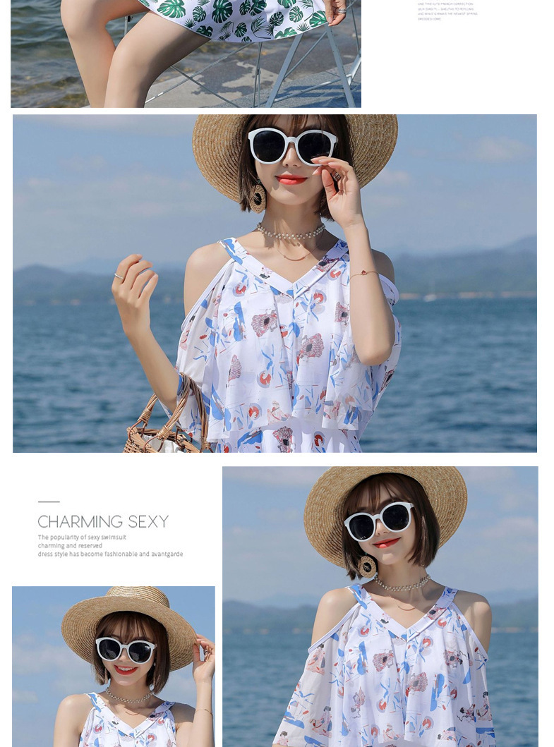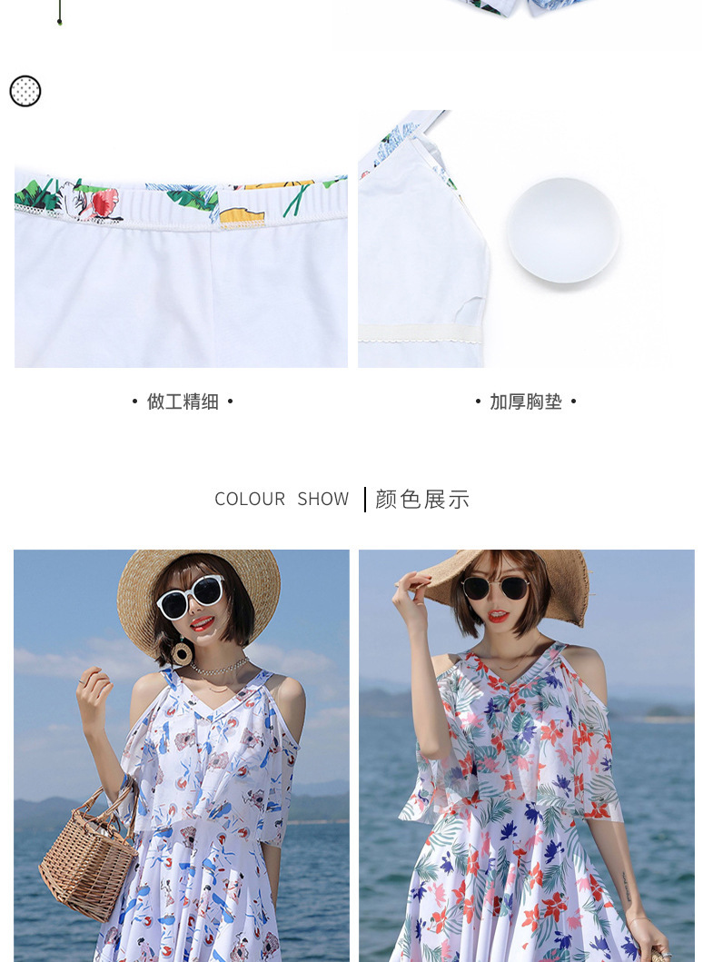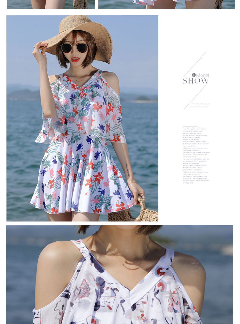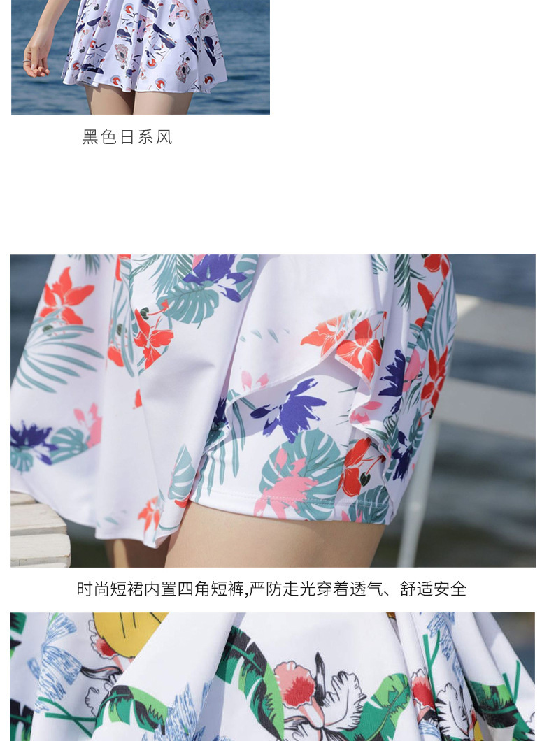 일본식 여성용 수영복 새 인쇄 된 어깨 민소매 메쉬 수영복 스커트 스플릿 바지 홀리데이 스파 수영복