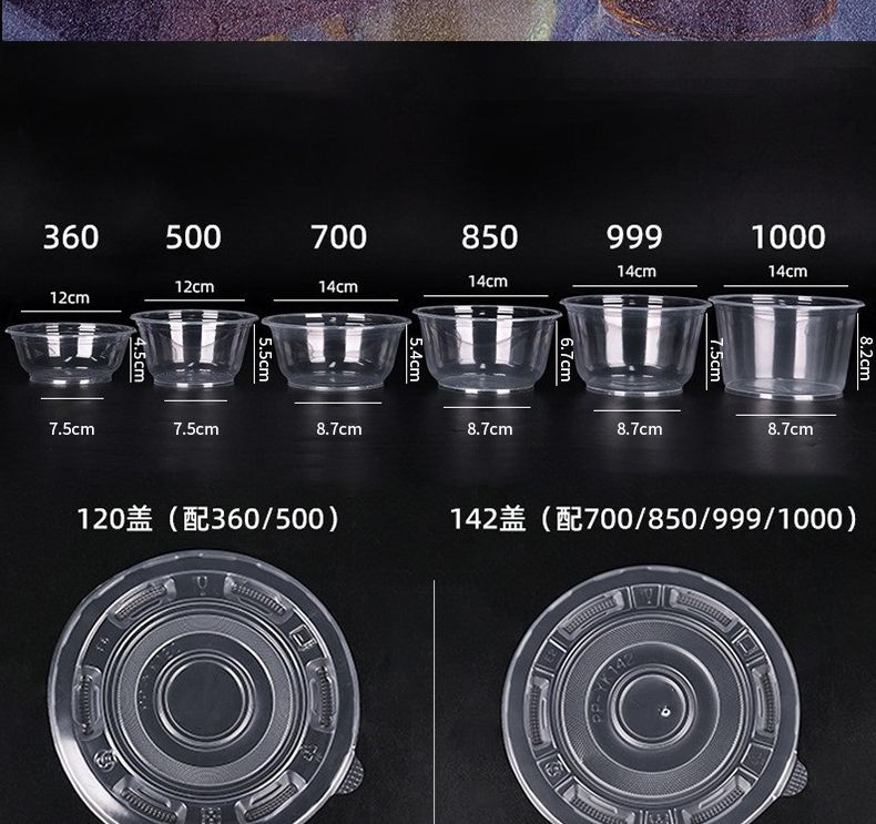 일회용 그릇 500 둥근 그릇 뚜껑이 있는 도시락 상자 얼음 가루 두꺼운 가정용 플라스틱 테이크아웃 포장 상업용 수프 그릇 전체 상자스토어 가기