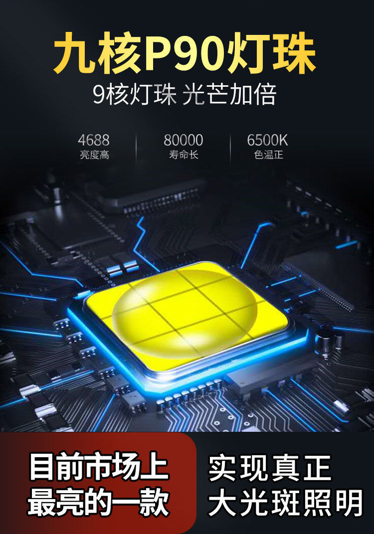 • 전자 점화 + 파동 센서 + 전원 디스플레이 + 보조베터리 - 백색광 9코어 P90 수입 6리튬 배터리 초대형 광점
