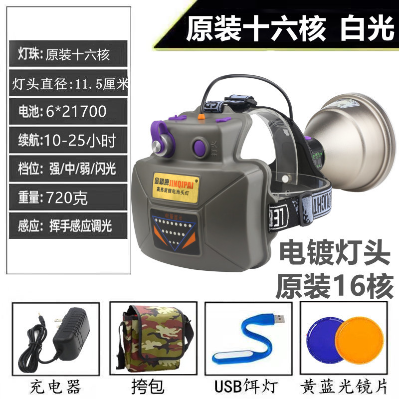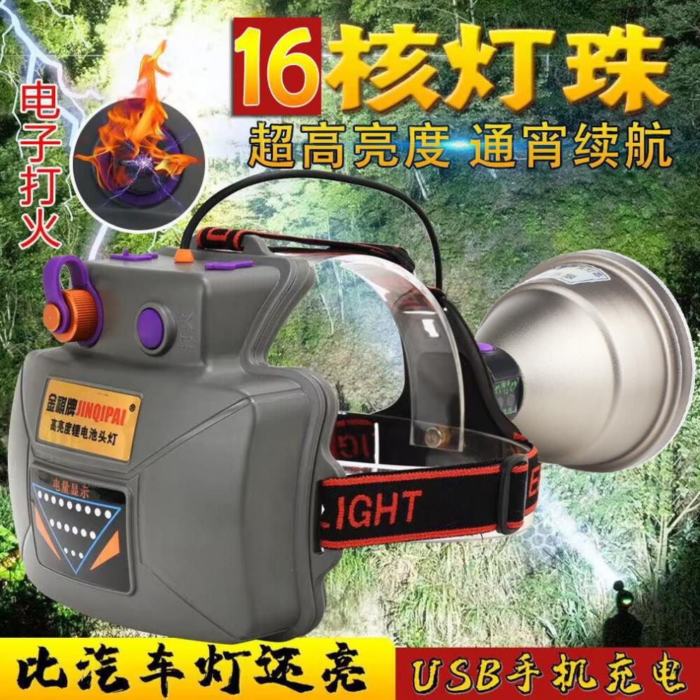 16 코어 강한 빛 헤드 라이트 장거리 충전 장기 배터리 수명 리튬 전기 헤드 장착 야간 낚시 leb스토어 가기