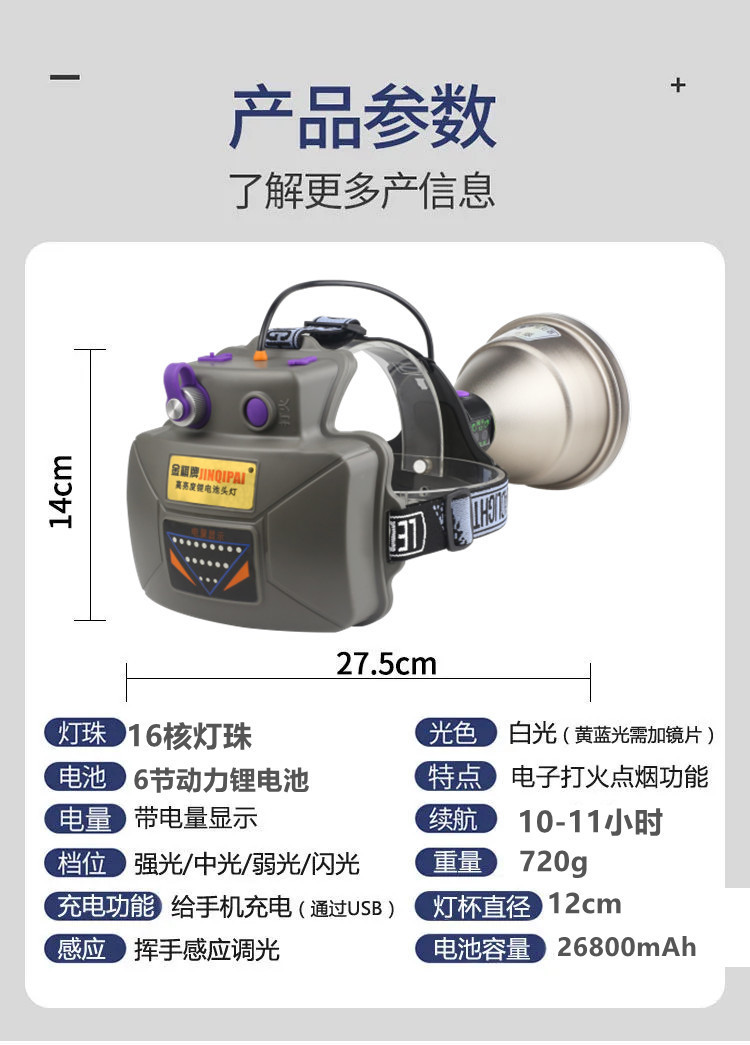 • 전자 점화 + 파동 센서 + 전원 디스플레이 + 보조베터리 - 16코어 밝은 오버로드, 강한 빛, 밤새 배터리 수명, 노란색 표시등