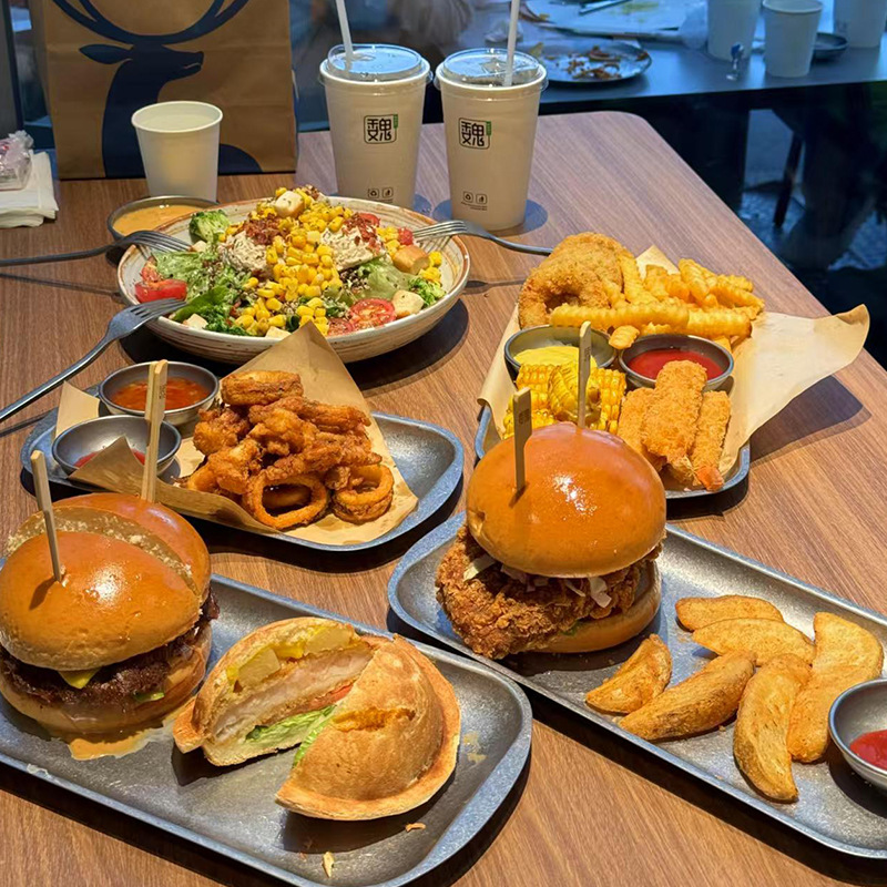 미국식 햄버거 가게 식기 세트 304 스테인리스 스틸 접시 레트로 스타일 빈티지 트레이 상업용 주방