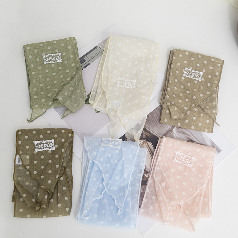 여성용 고급 실크 스카프, 긴 도트 무늬 디자인, 2025 새로운 도트 무늬 스카프 리본, 다용도 넥 타이 자수 로고