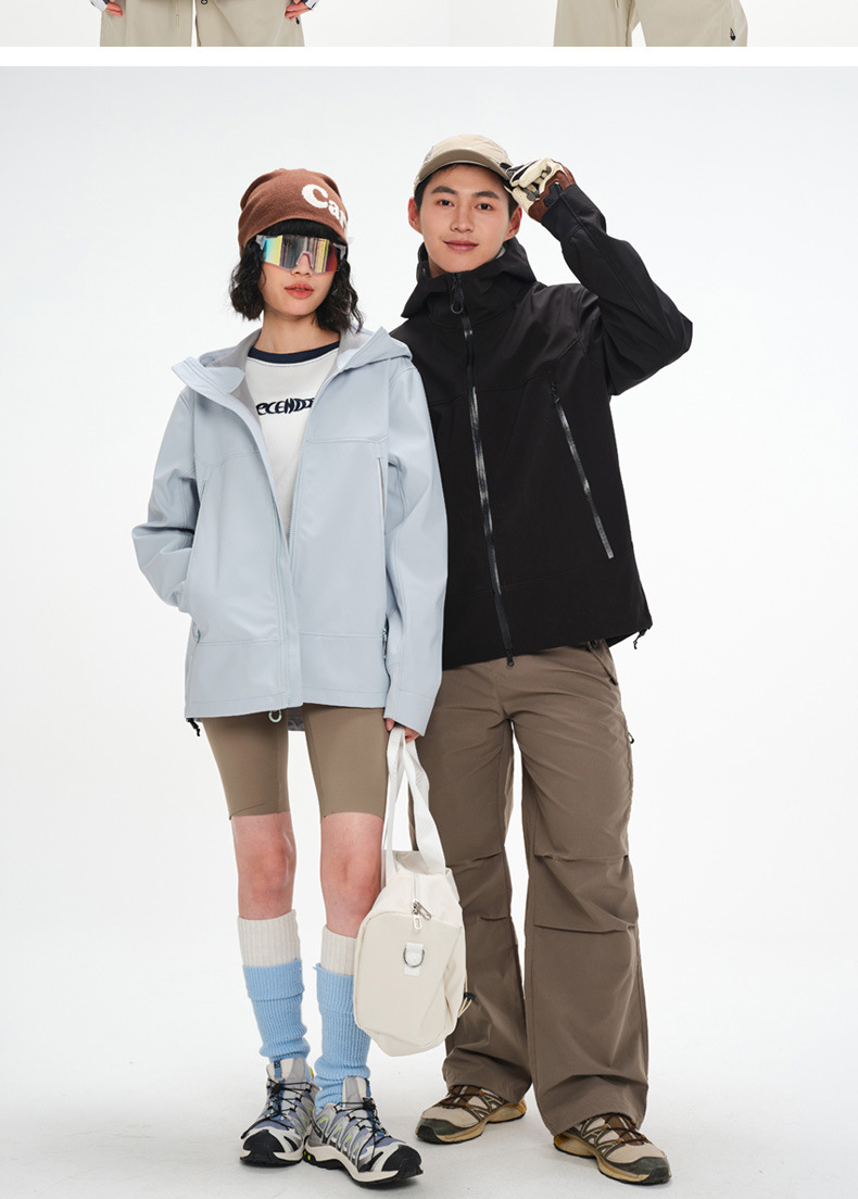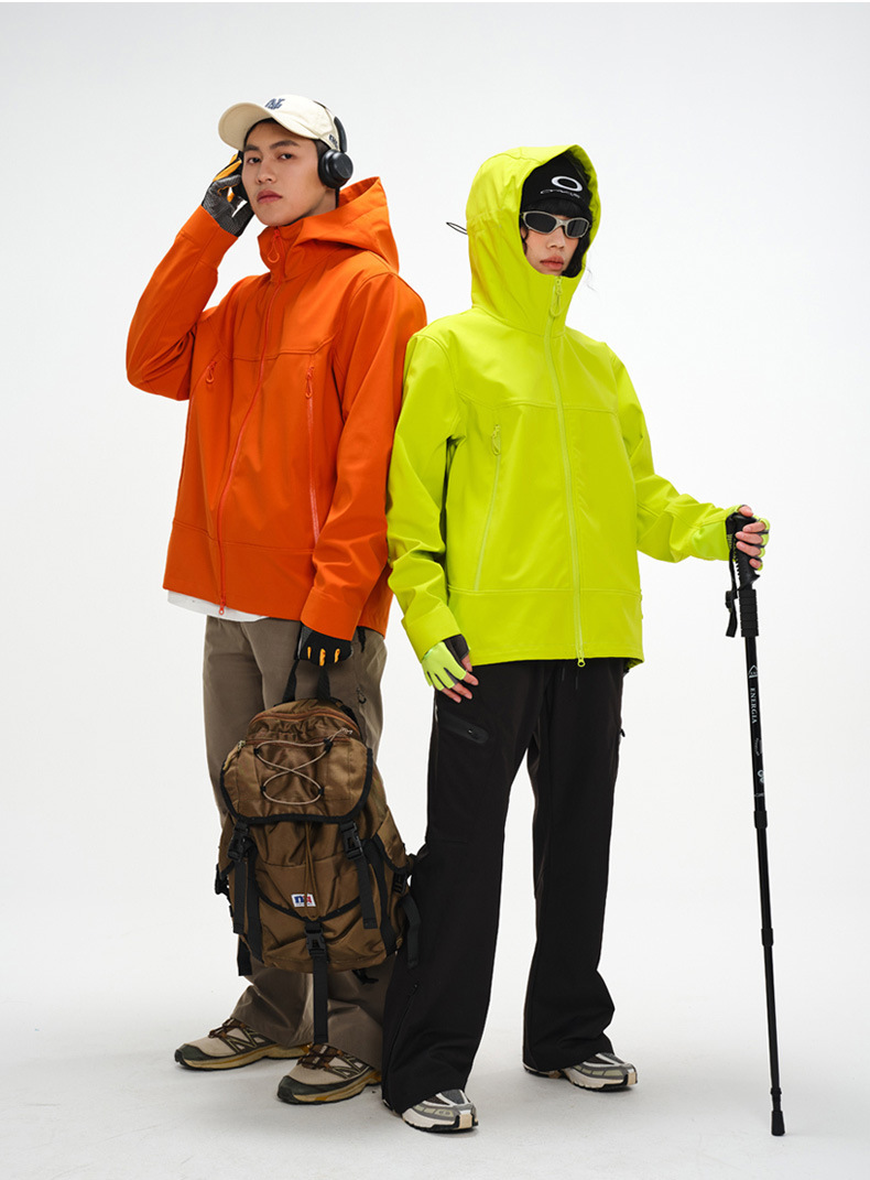 버드홈 동일 스타일 소프트쉘 재킷 여성용 후드 남성용 아웃도어 등산복 방풍 방수 보온 재킷 등산복