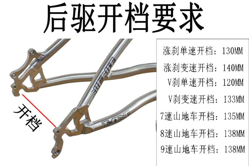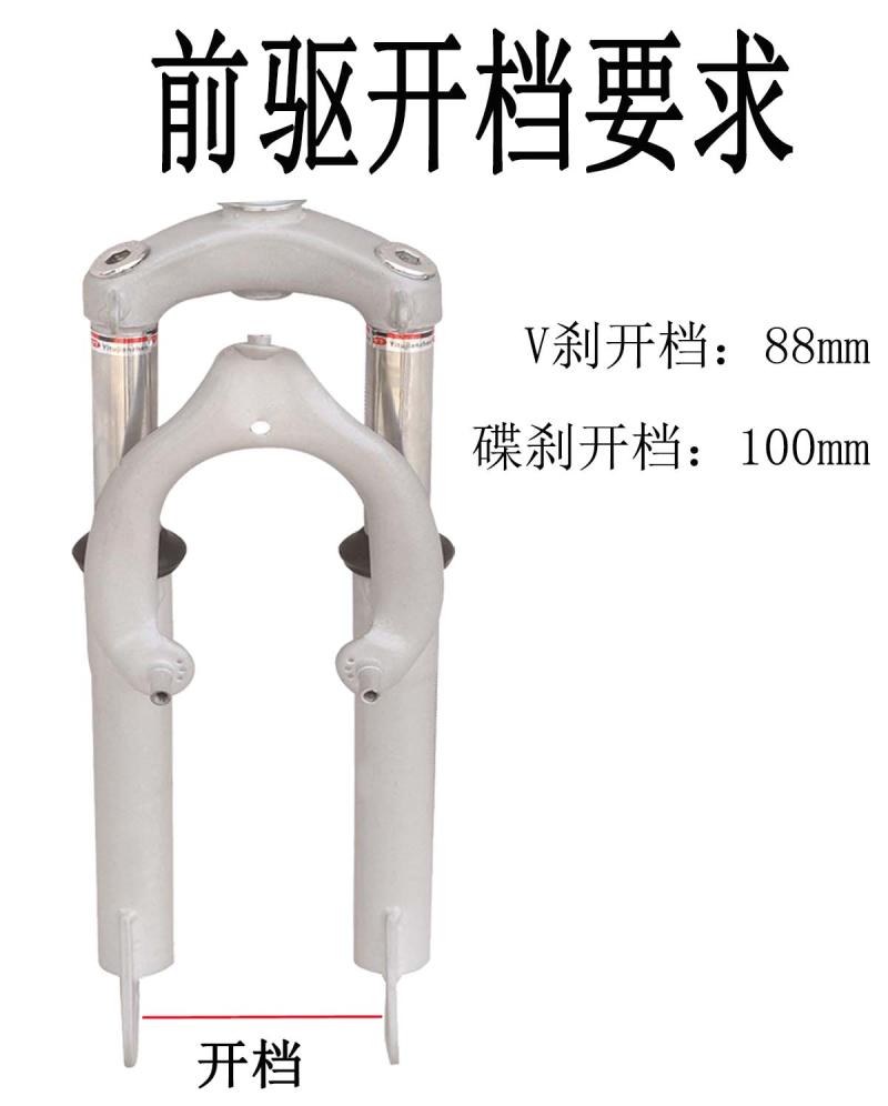 山地车变速自行车前驱后驱都可以改装。碟刹的自行车安装碟刹盘,而V刹的只有不安装碟刹盘一般就行了。