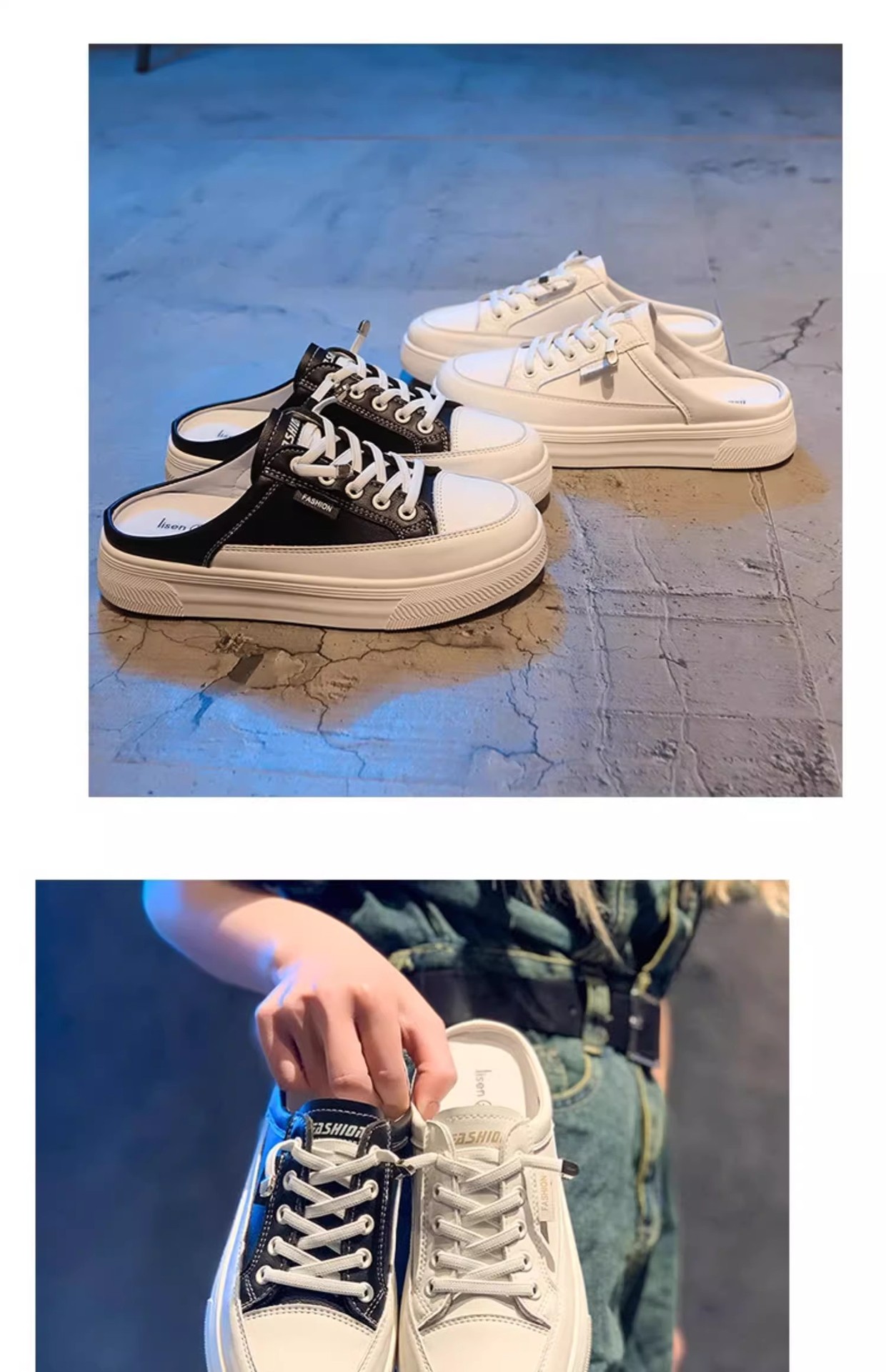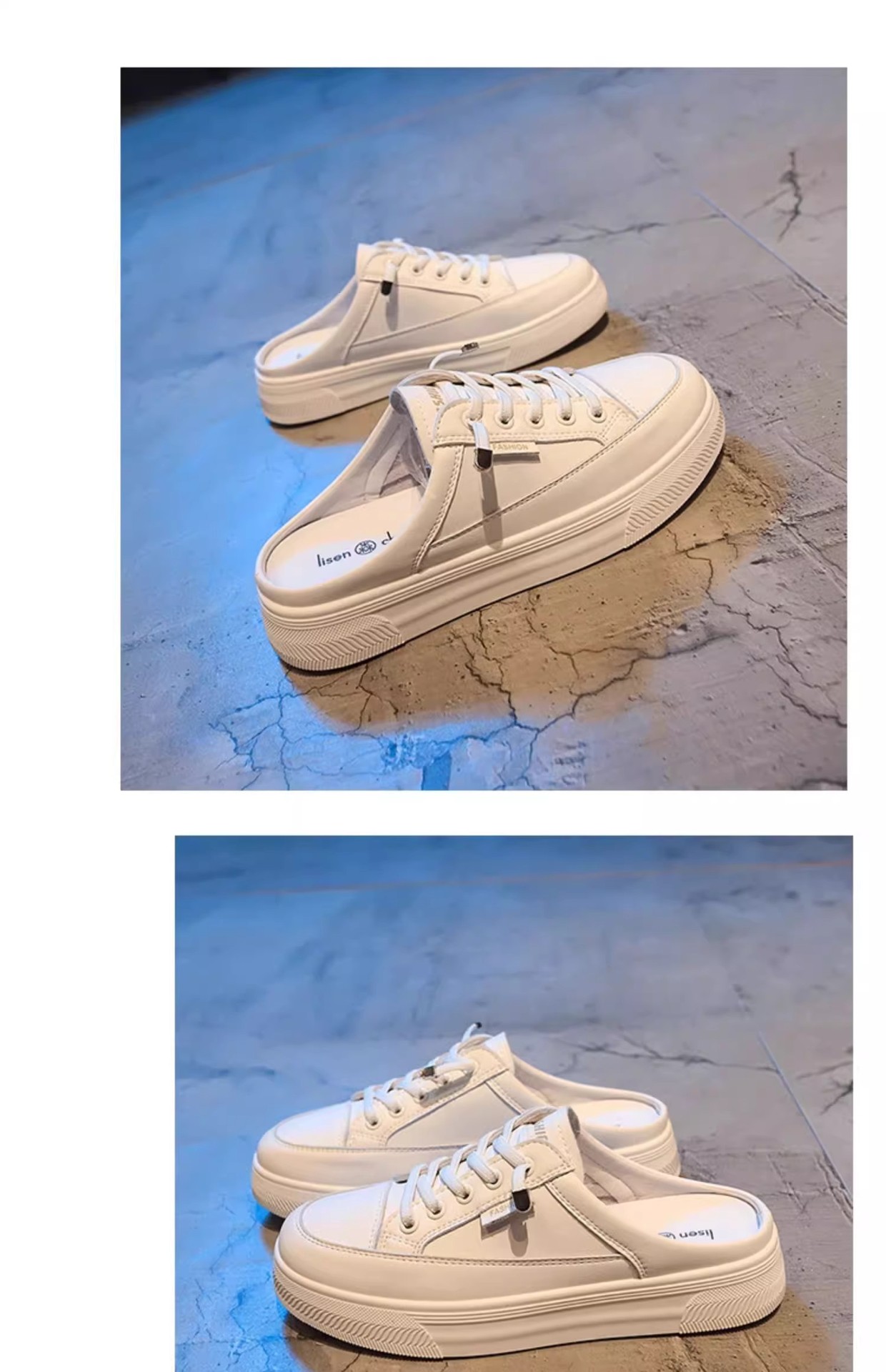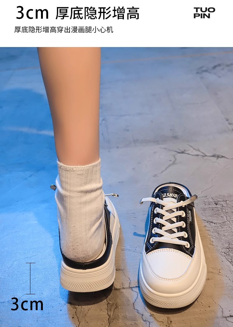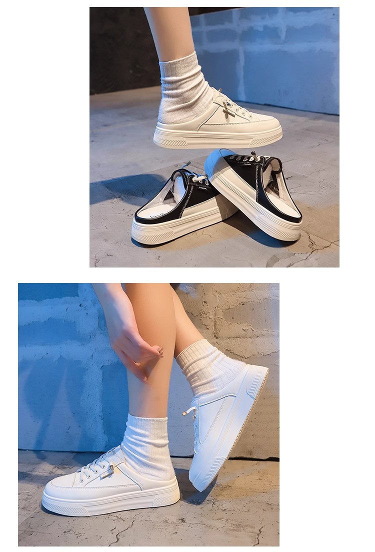 정품 가죽 힐리스 화이트 슈즈 여성 봄과 여름 2025 새로운 패션 올 매치 슬립 온 게으른 슬리퍼스토어 가기