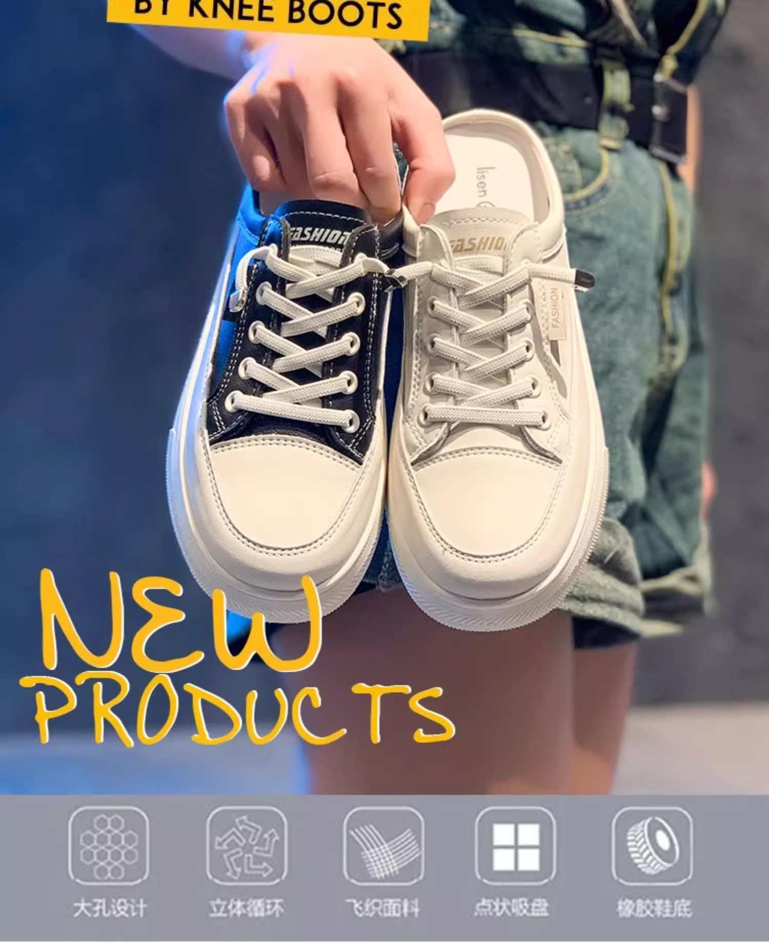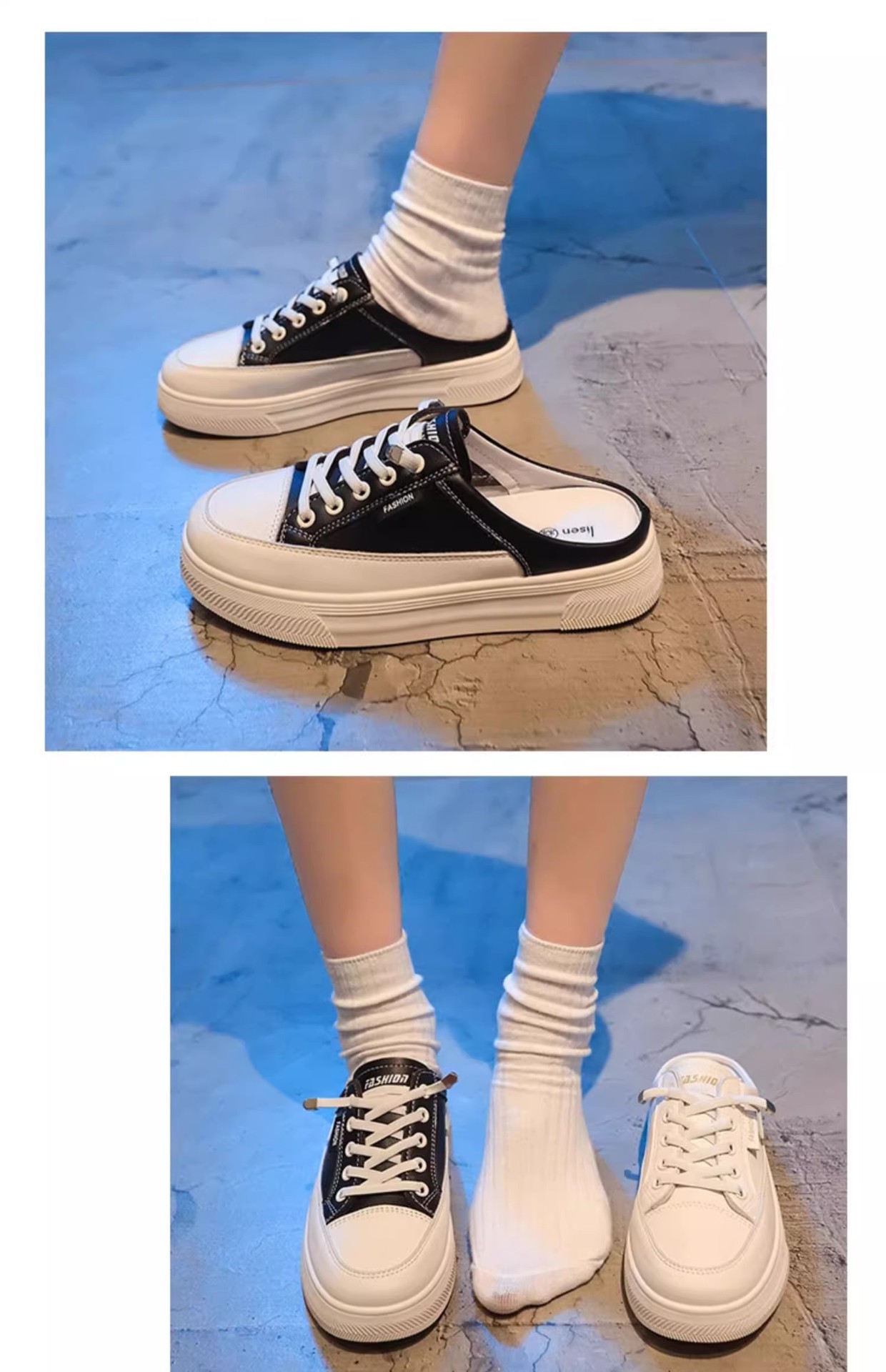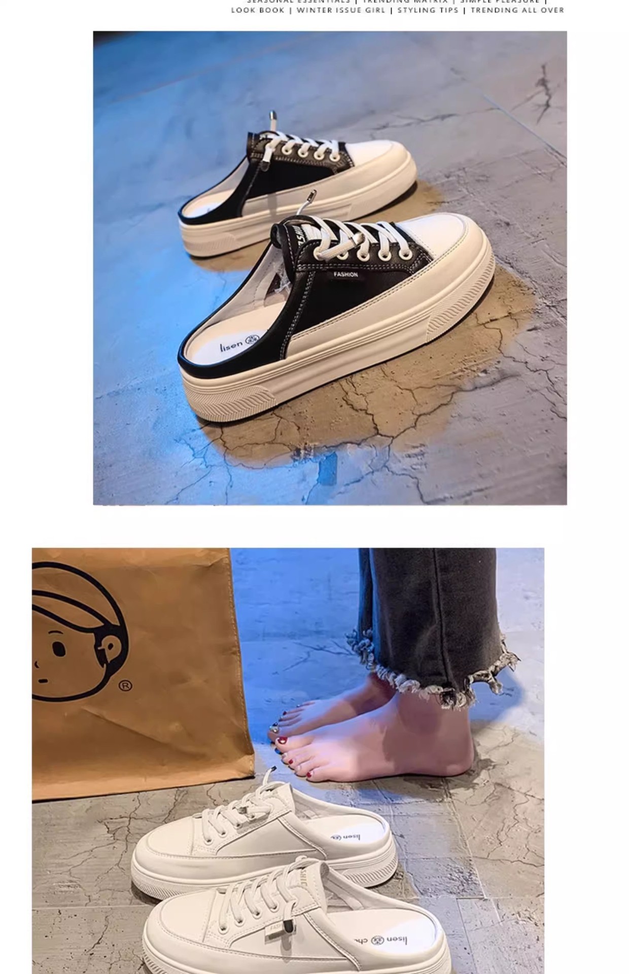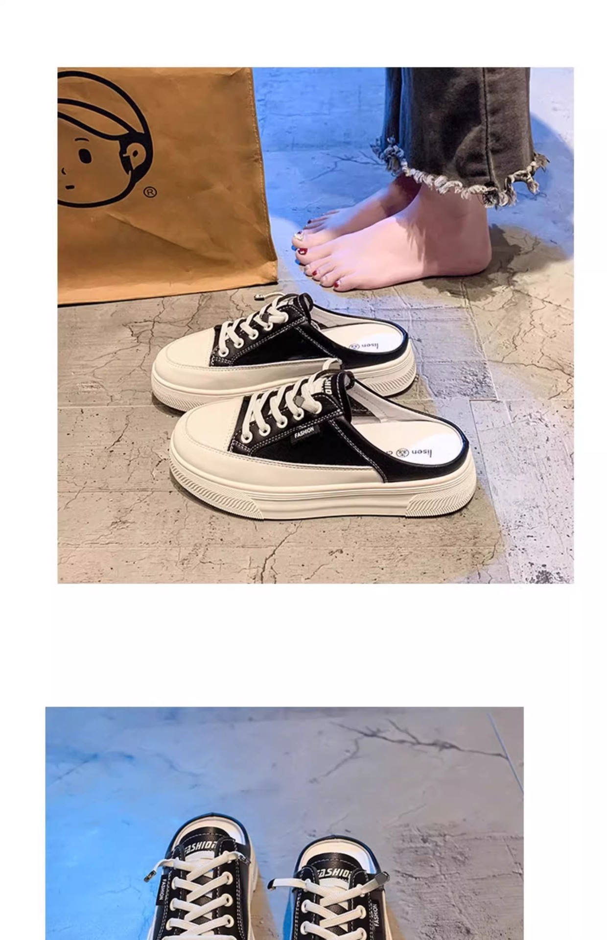 정품 가죽 힐리스 화이트 슈즈 여성 봄과 여름 2025 새로운 패션 올 매치 슬립 온 게으른 슬리퍼스토어 가기