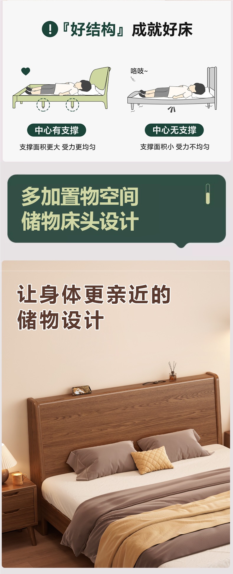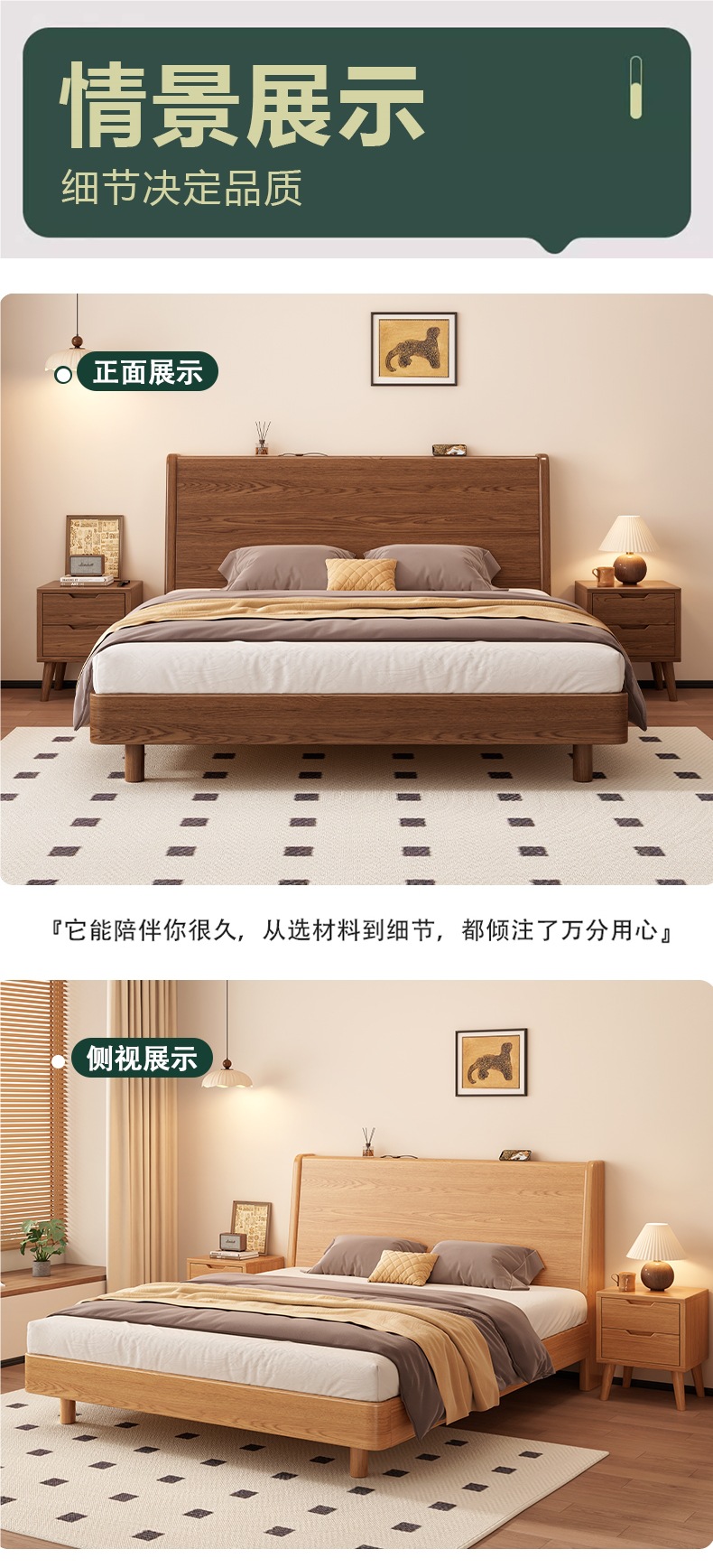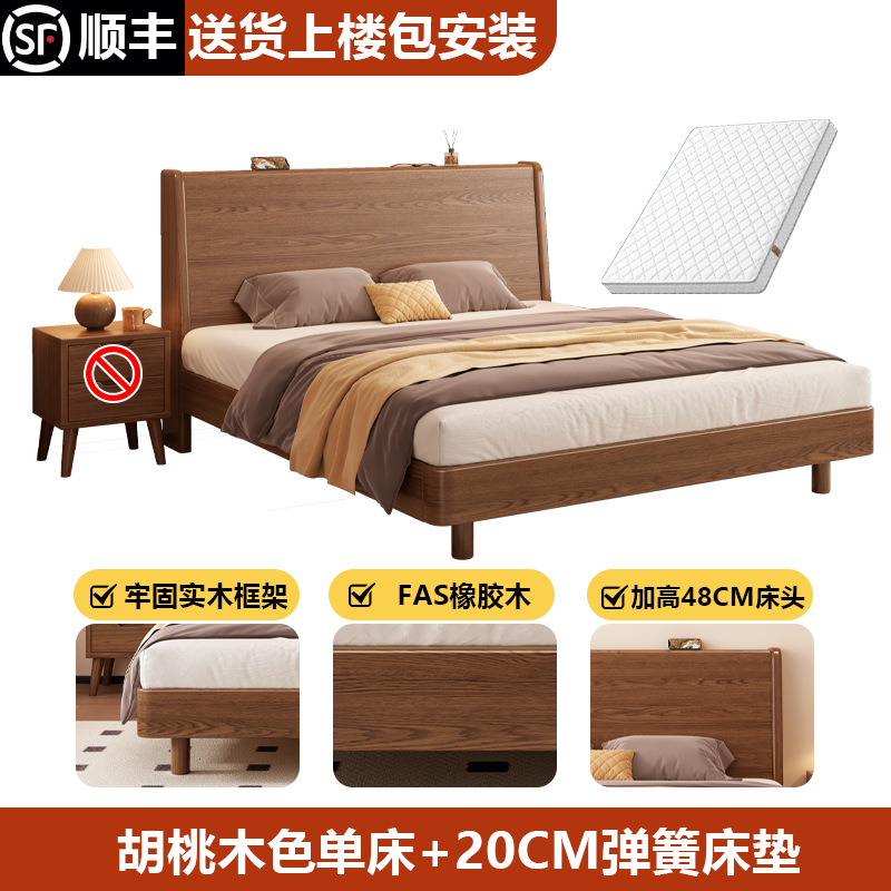 • 월넛 컬러 싱글 침대 + 20CM 스프링 매트리스 + 침대 옆 테이블 * 1 [설치 포함]