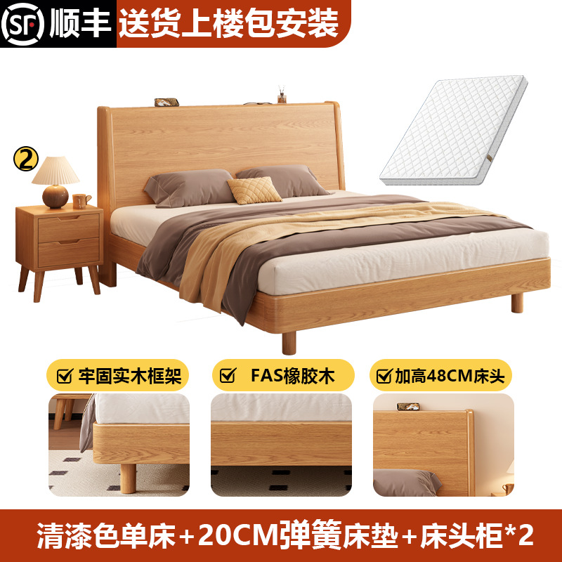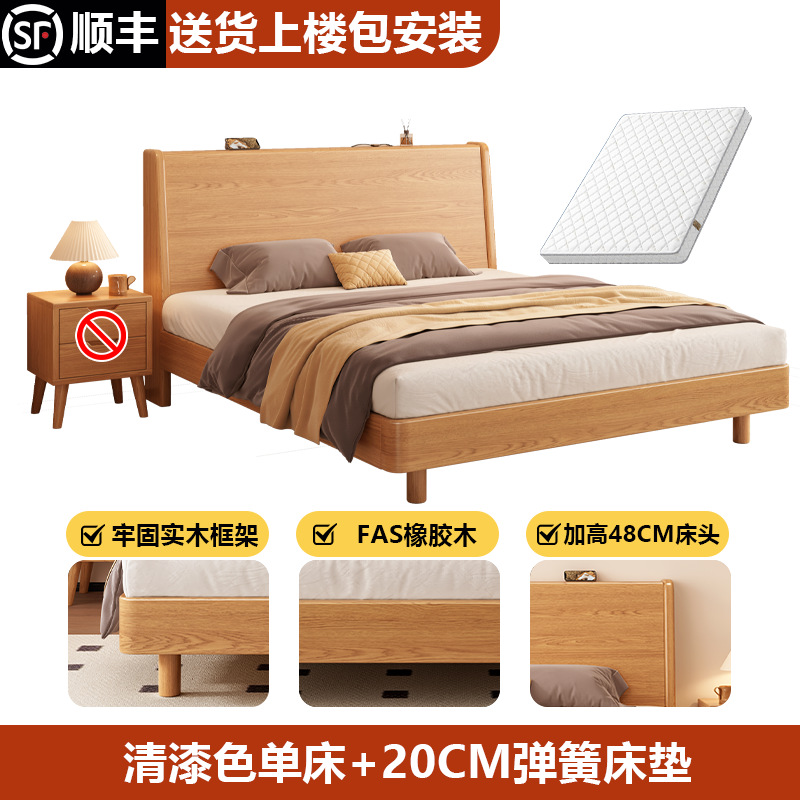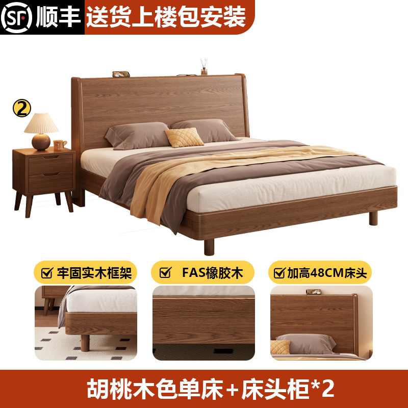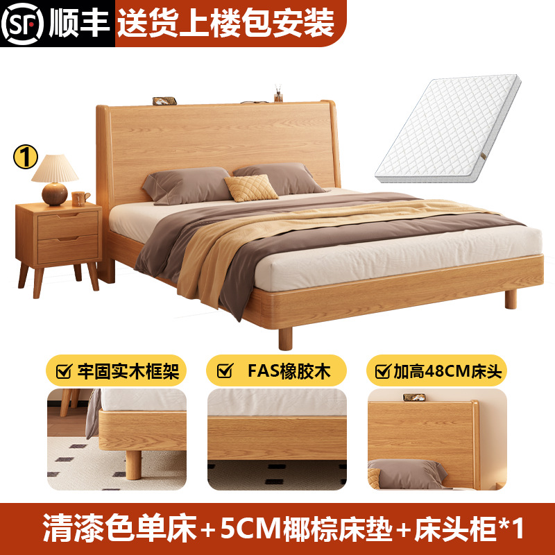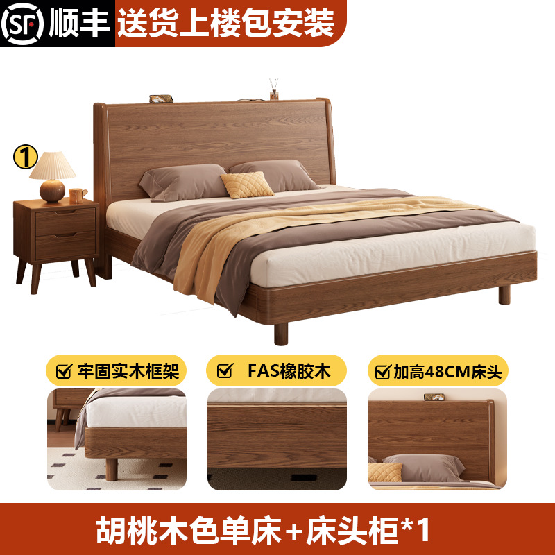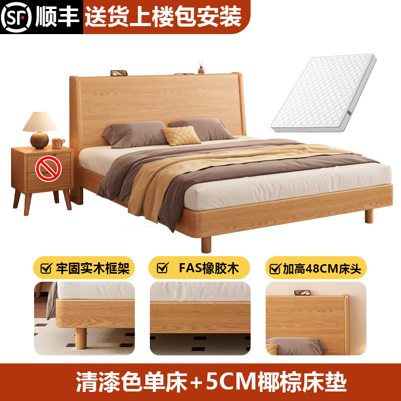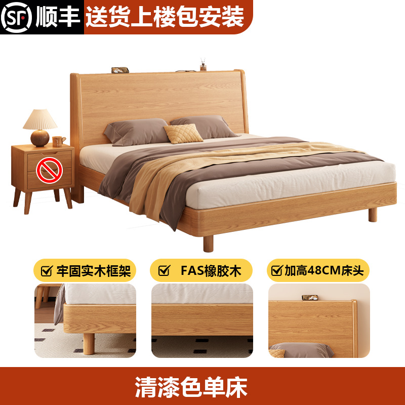 단단한 나무 침대 1.8 m 더블 침대 현대 간단한 1.5 m 퀸 침대 홈 마스터 침실 고무 나무 임대 방 싱글 침대스토어 가기