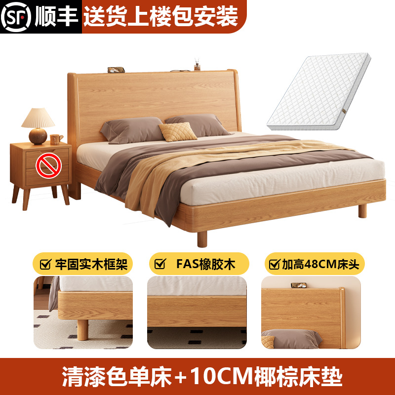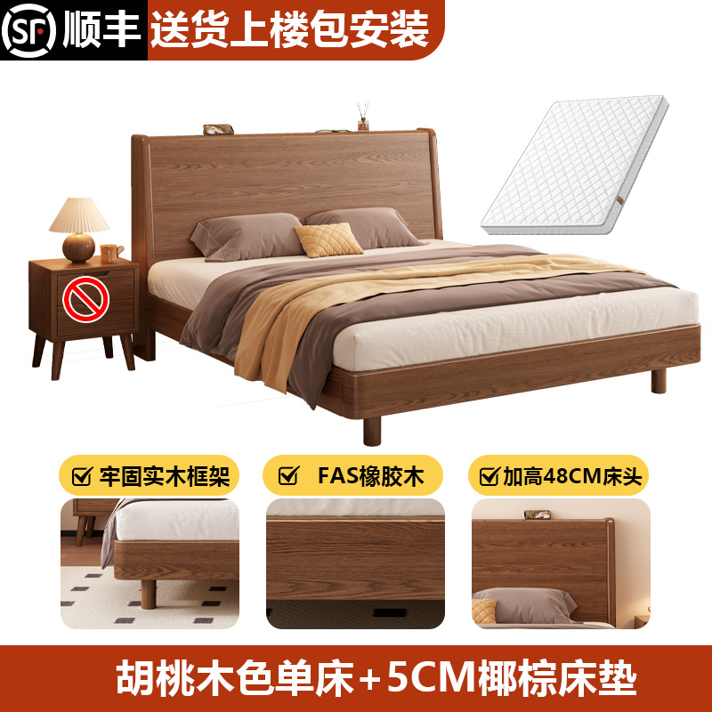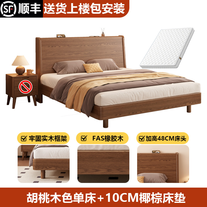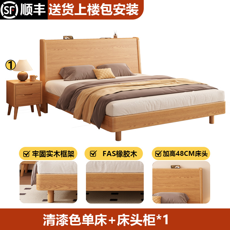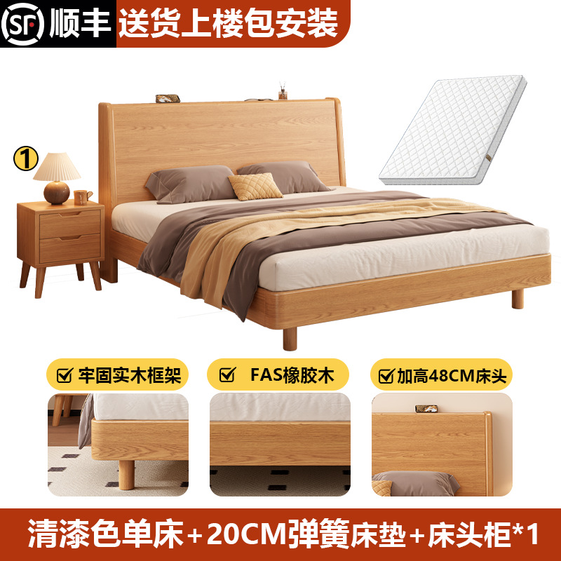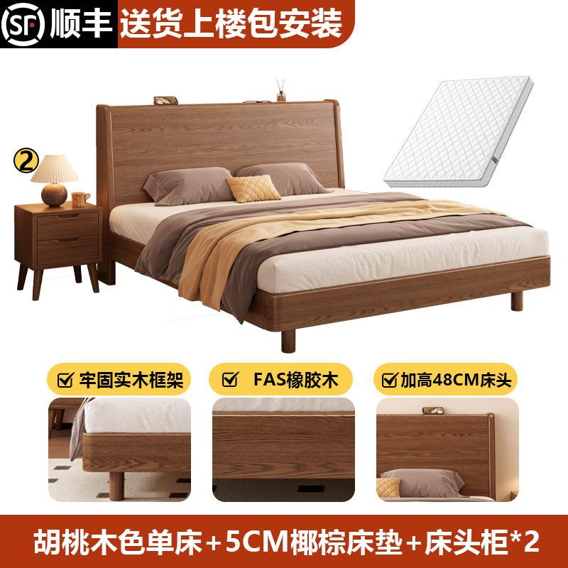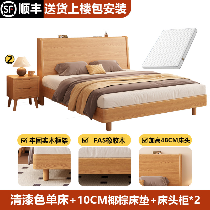 단단한 나무 침대 1.8 m 더블 침대 현대 간단한 1.5 m 퀸 침대 홈 마스터 침실 고무 나무 임대 방 싱글 침대스토어 가기