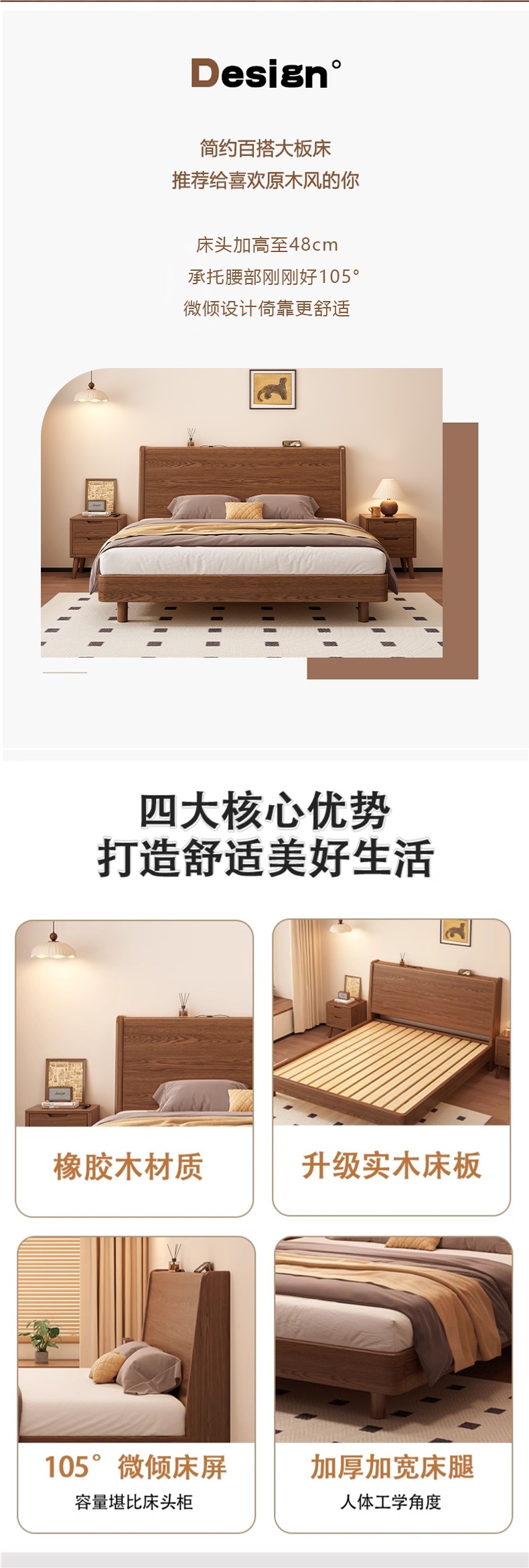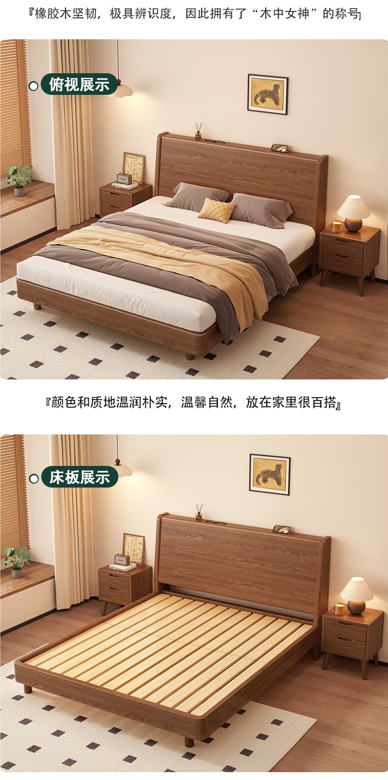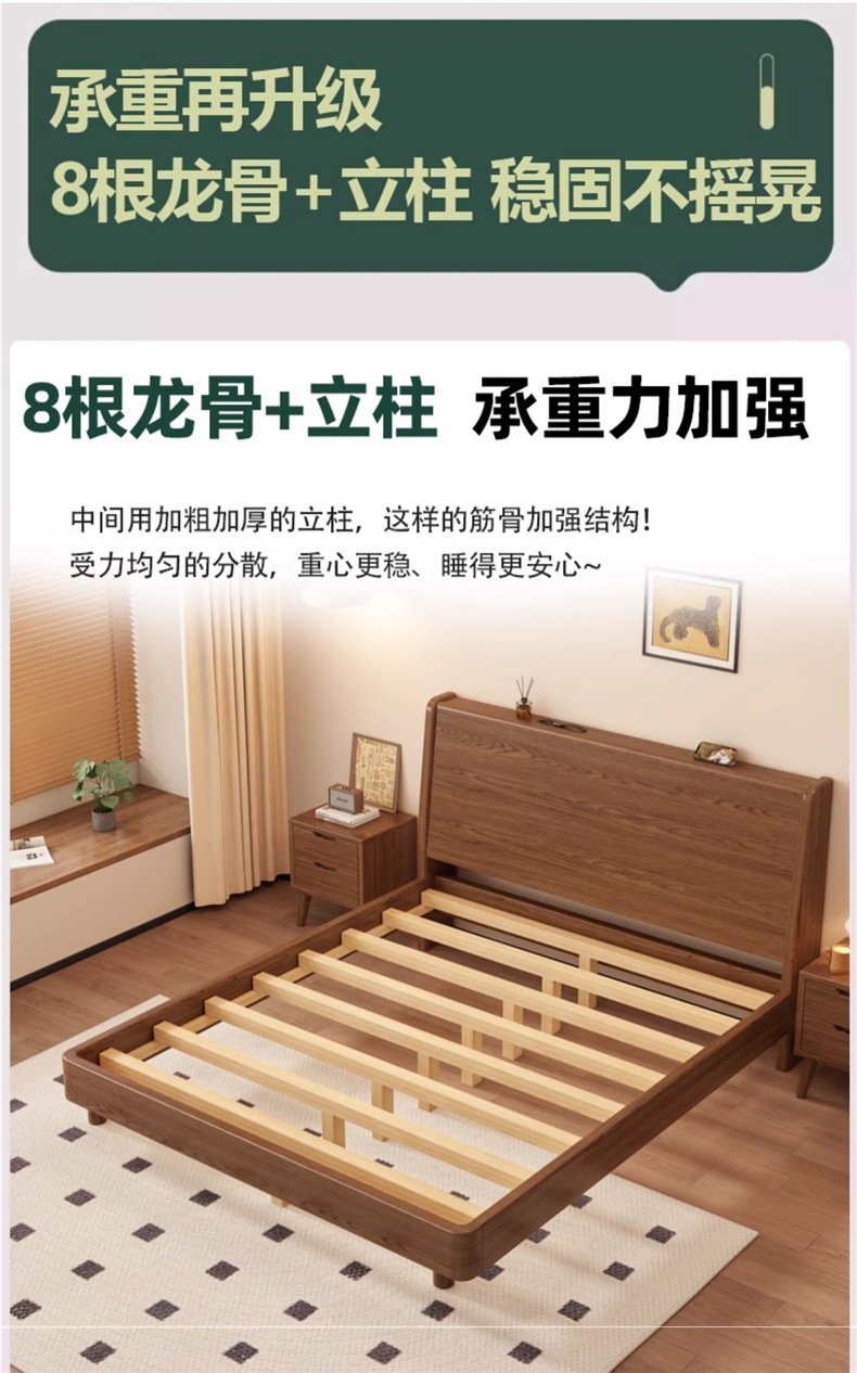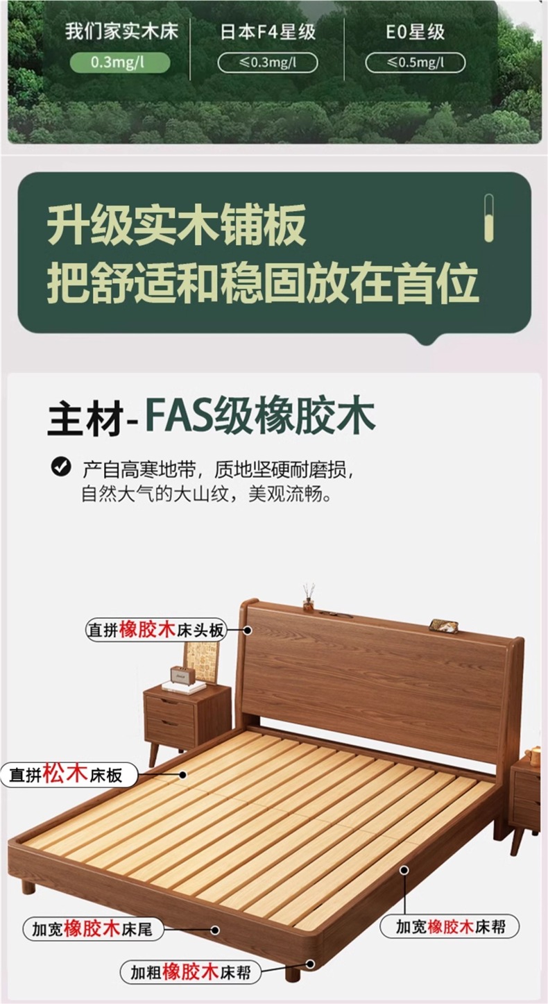단단한 나무 침대 1.8 m 더블 침대 현대 간단한 1.5 m 퀸 침대 홈 마스터 침실 고무 나무 임대 방 싱글 침대스토어 가기