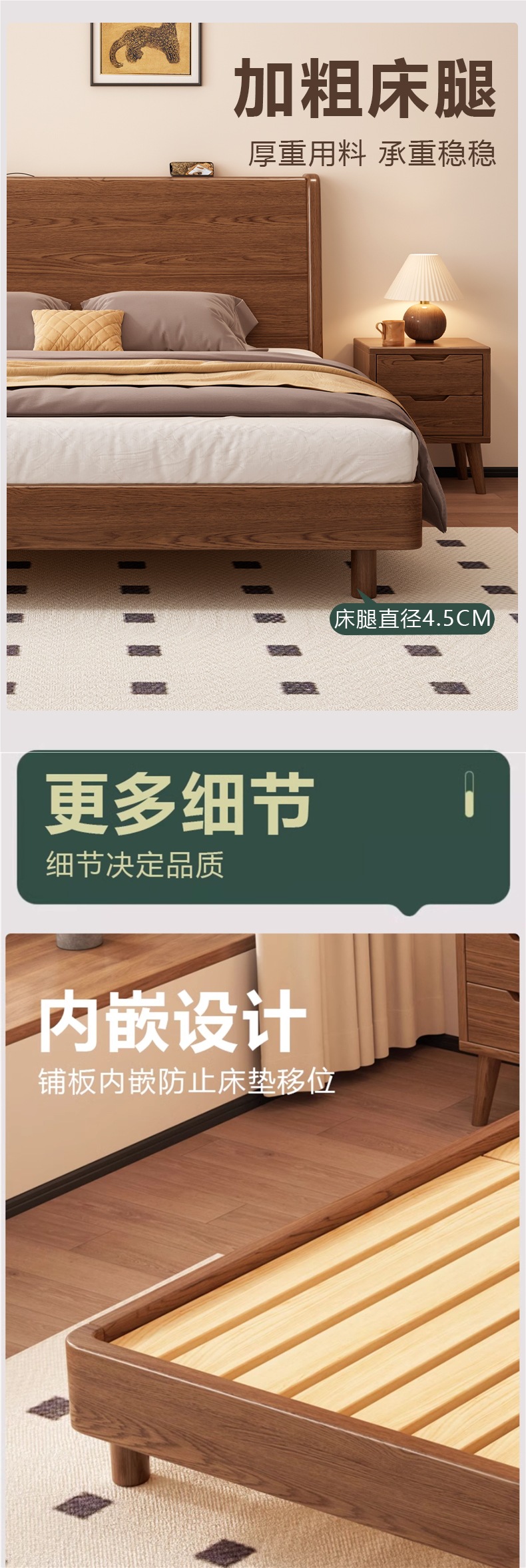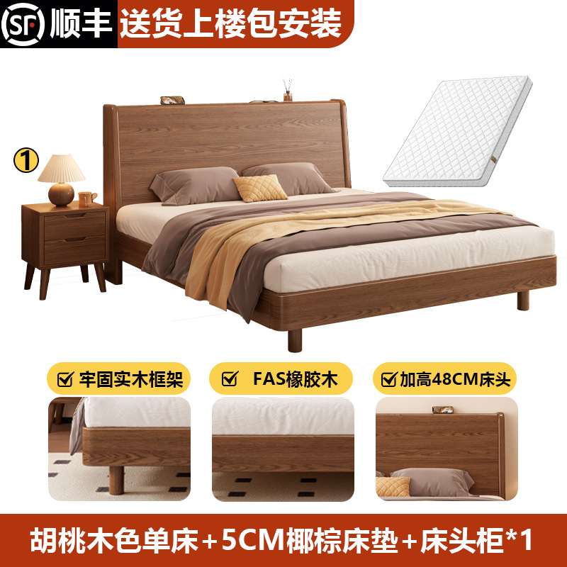 • 월넛 컬러 싱글 침대 + 5CM 코코넛 야자 매트리스 + 침대 옆 테이블 * 1 [설치 포함]