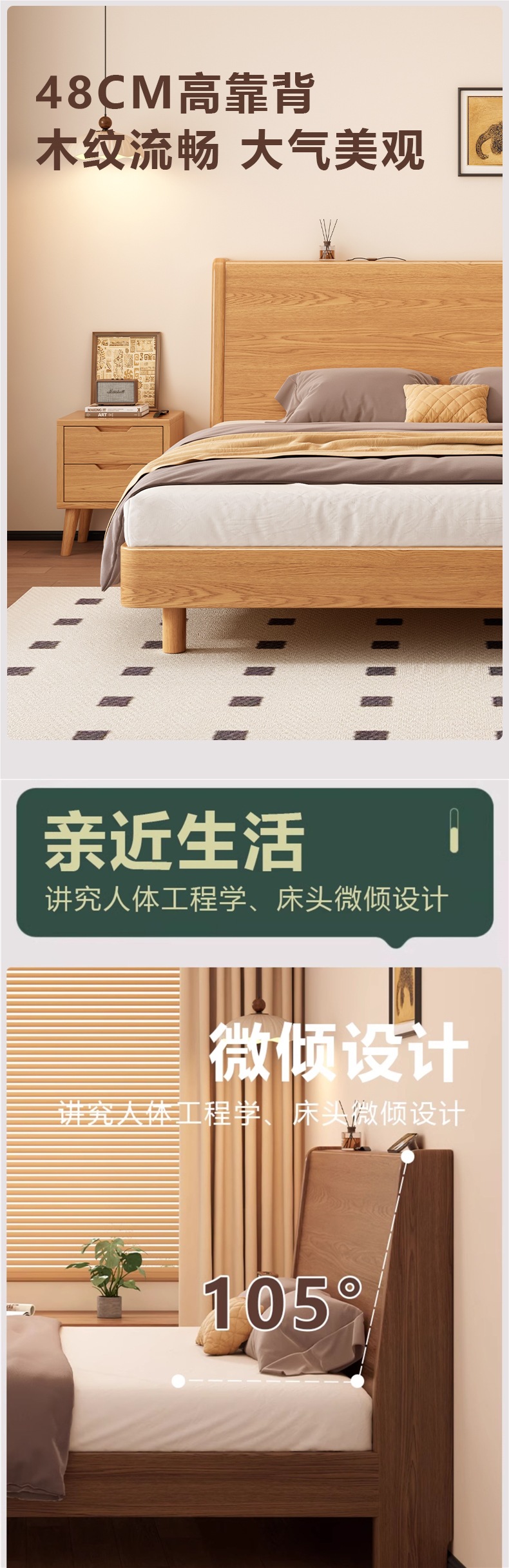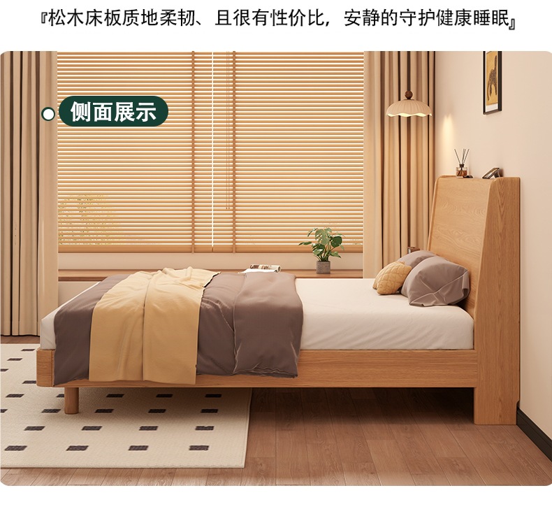 • 바니시 컬러 싱글 침대 + 20CM 스프링 매트리스 + 침대 옆 테이블 * 1 [설치 포함]