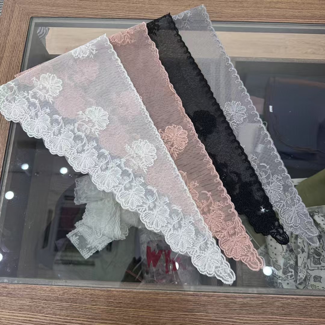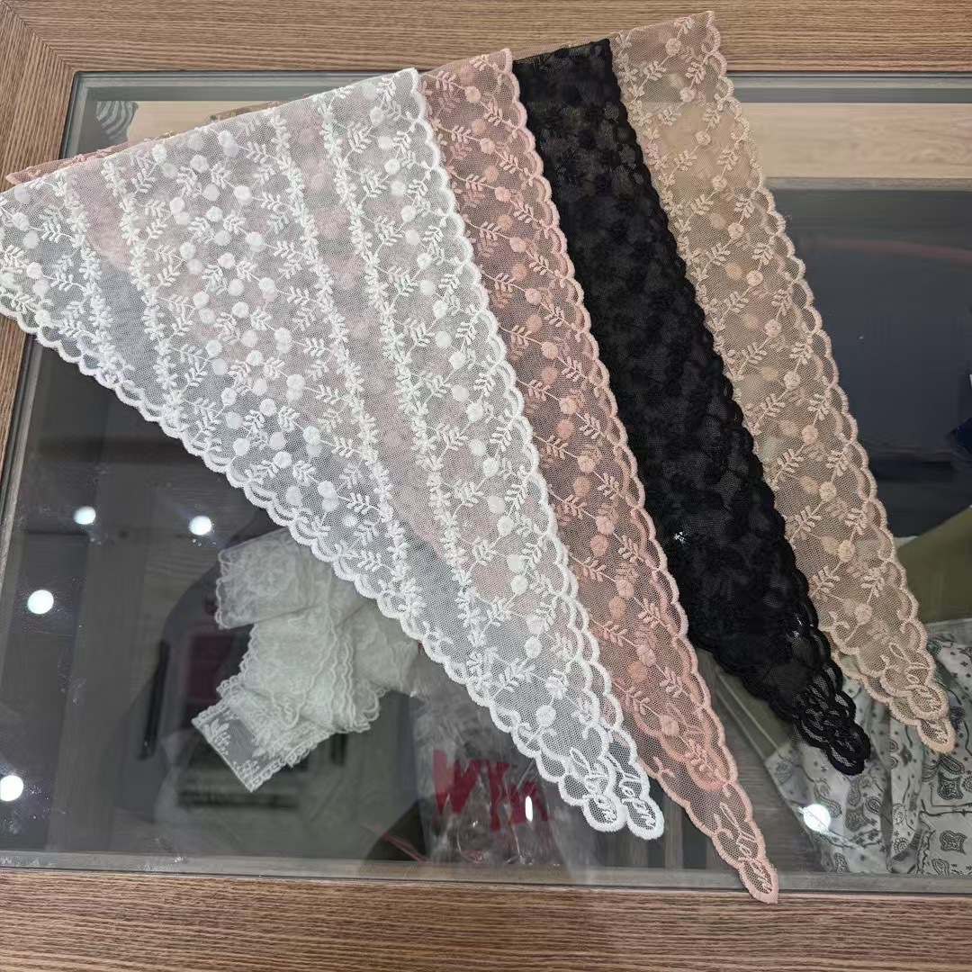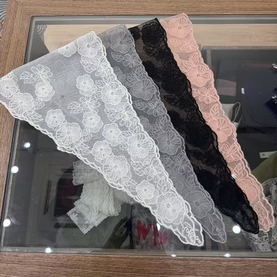 프랑스 스타일 꽃 레이스 삼각형 실크 스카프 여성의 봄과 여름 서양 스타일 올 매치 장식 작은 스카프 얇은 테이프 거즈