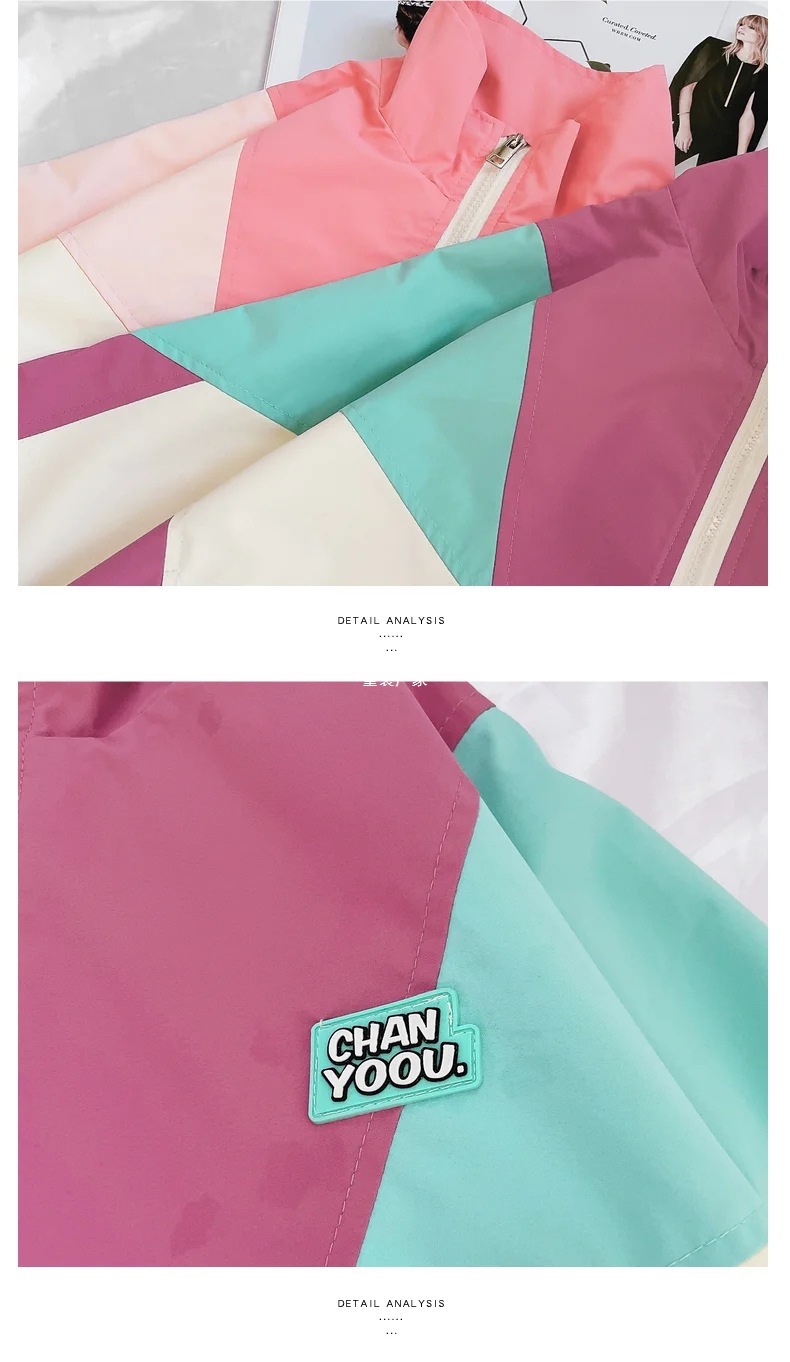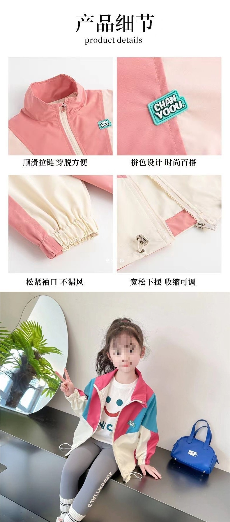 여아 코트, 봄, 가을 스타일, 중소형 아동 재킷, 상의, 아동복, 봄 스타일, 캐주얼 재킷, 대비색, 다용도스토어 가기