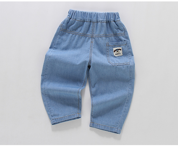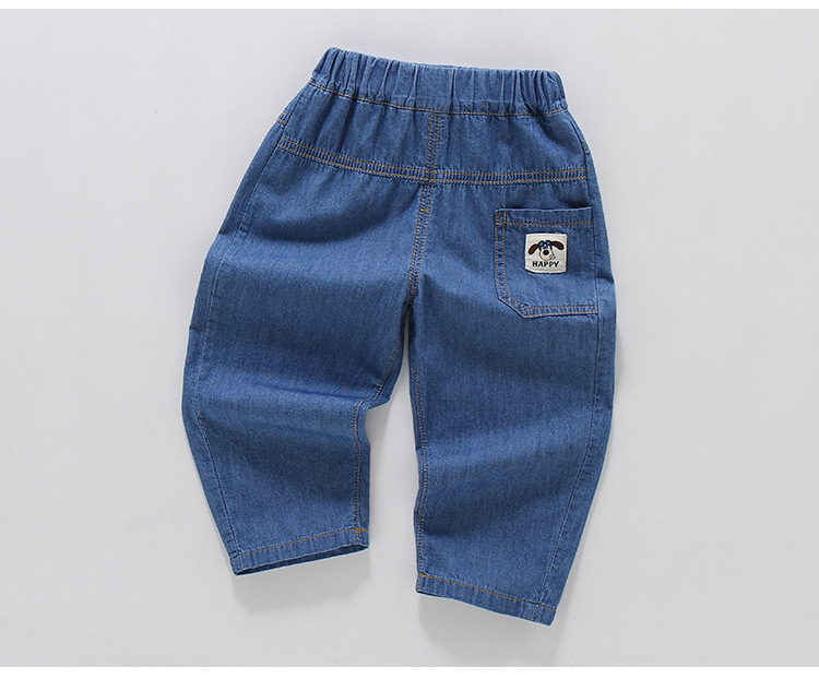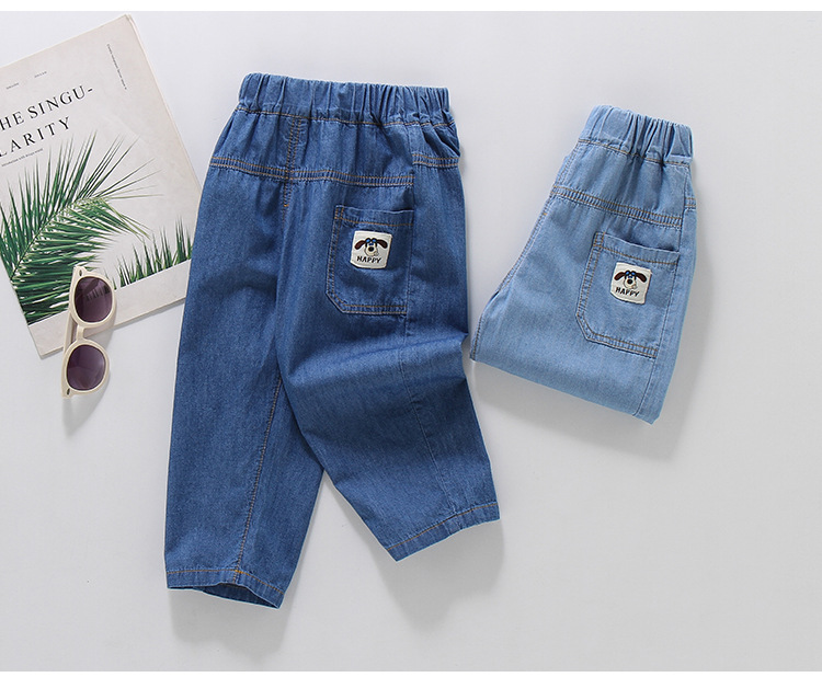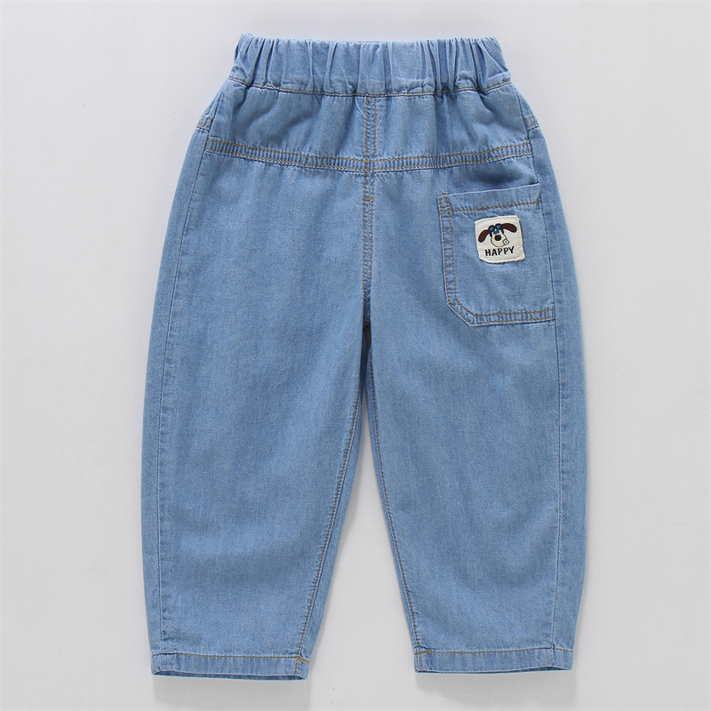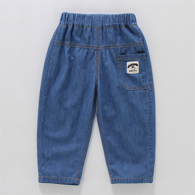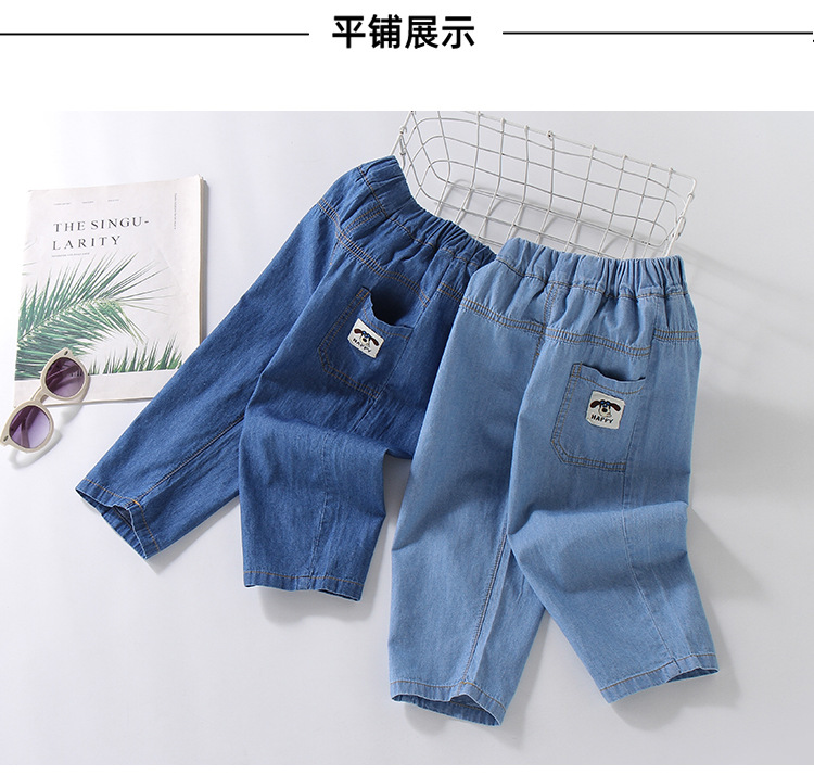 여름 소년의 얇은 데님 모기 방지 바지 면화 어린이 스트레이트 바지 슈퍼 소프트 퓨어 코튼 느슨한 손잡이 긴 바지스토어 가기