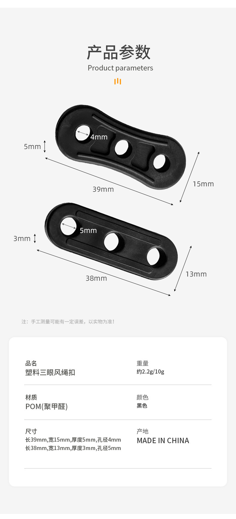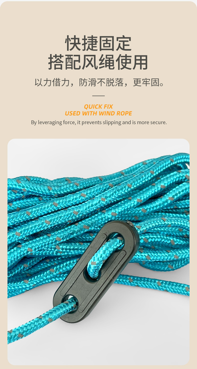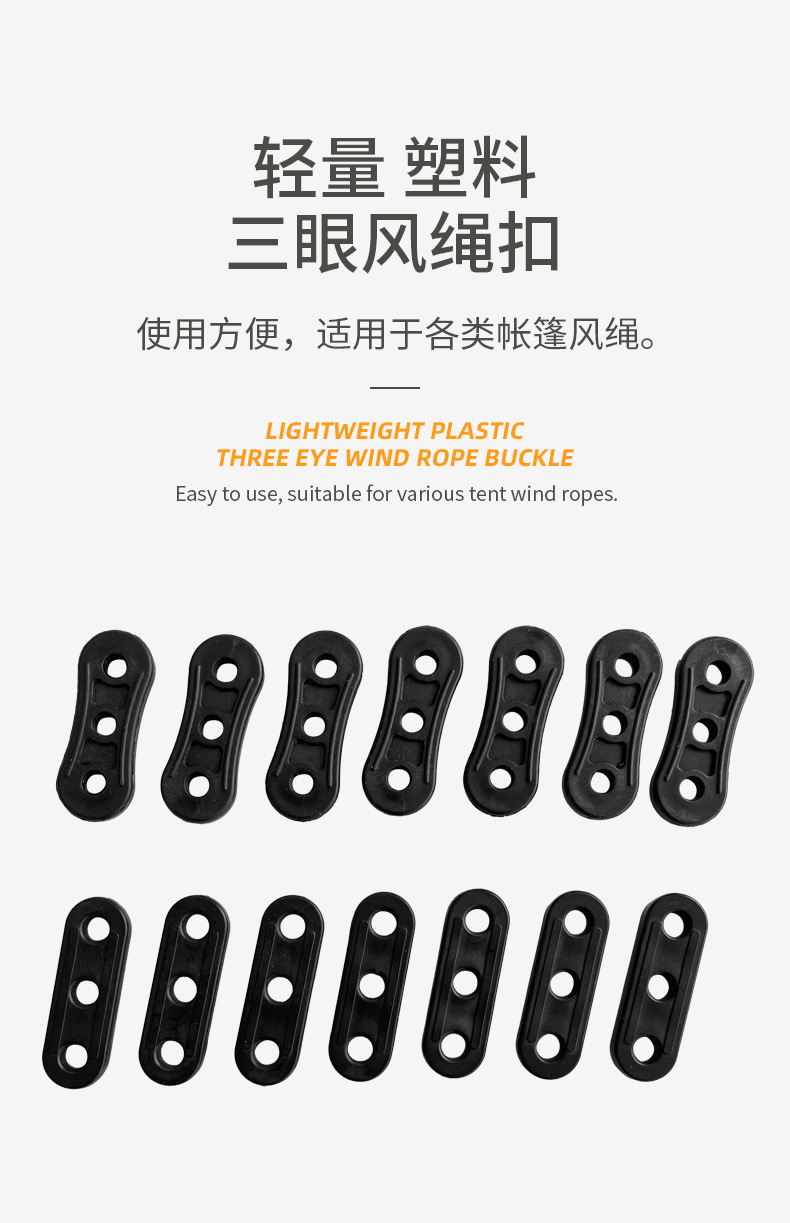 야외 등산 및 캠핑 텐트 방풍 로프 조절 버클 3구 로프 버클 플라스틱 미끄럼 방지 버클 3구 로프 버클