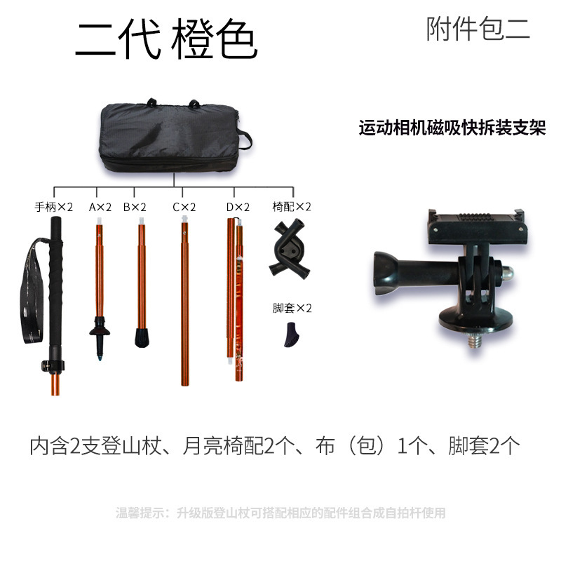 Guo Yu는 alpenstock 달 의자 접이식 야외 등산 장비 하이킹 지팡이 의자 다기능
