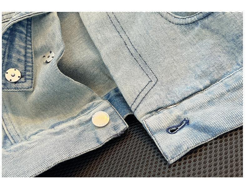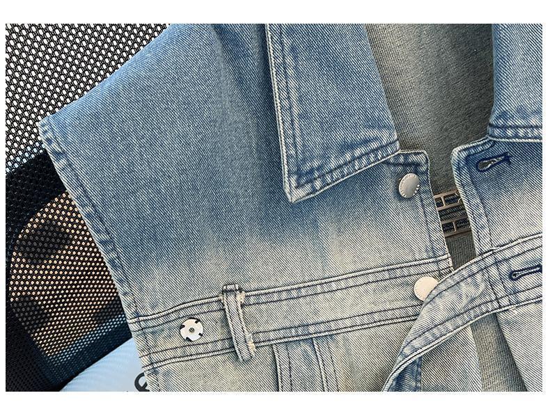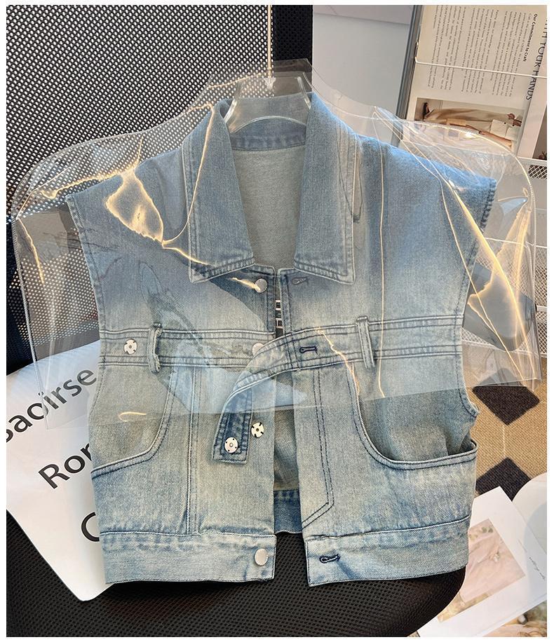 그라디언트 루즈 데님 조끼 여자 여름 칼라 유행 짧은 올 매치 조끼 디자인 스티칭 재킷스토어 가기