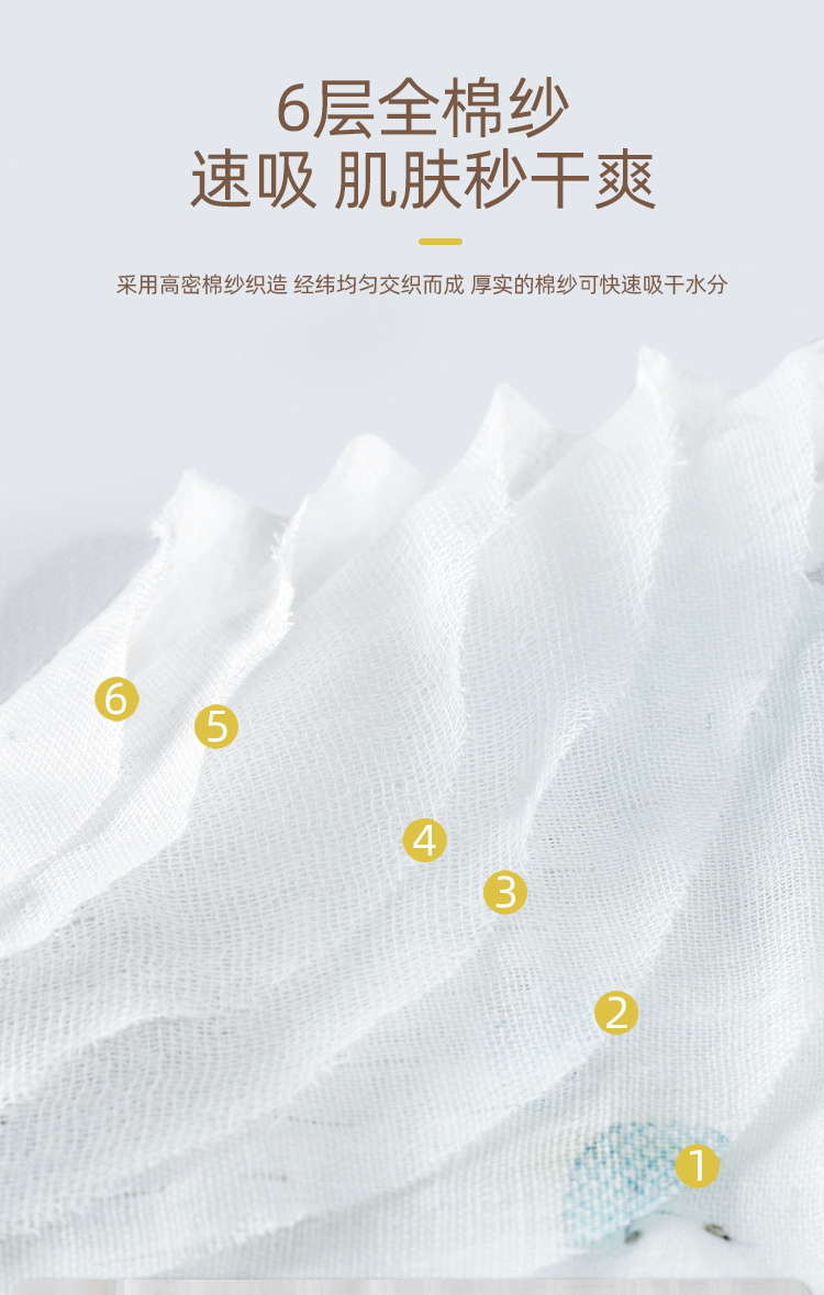 면 6겹 고밀도 A급 신생아 거즈 목욕타월 아기 담요 유치원 낮잠 담요 랩