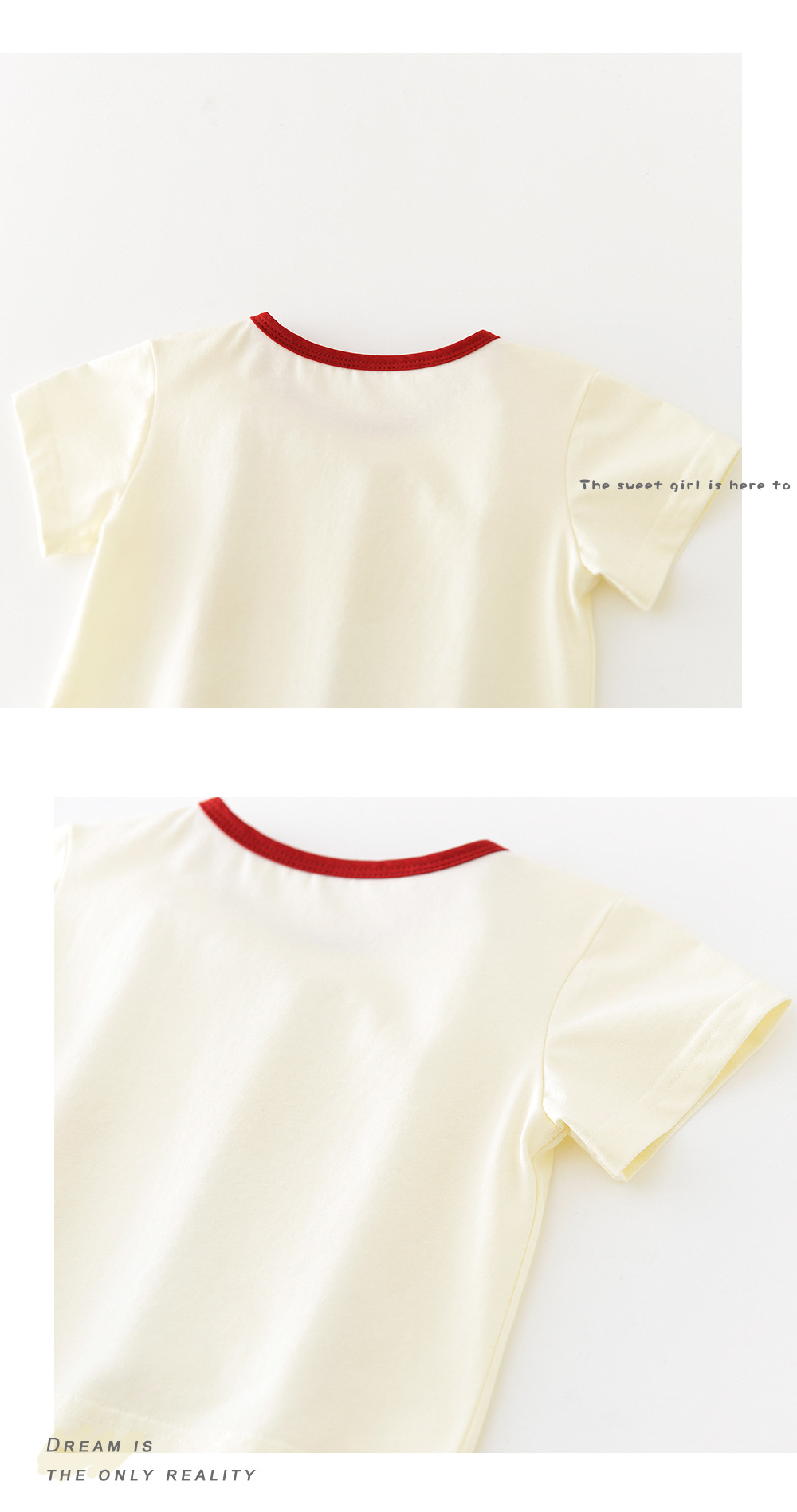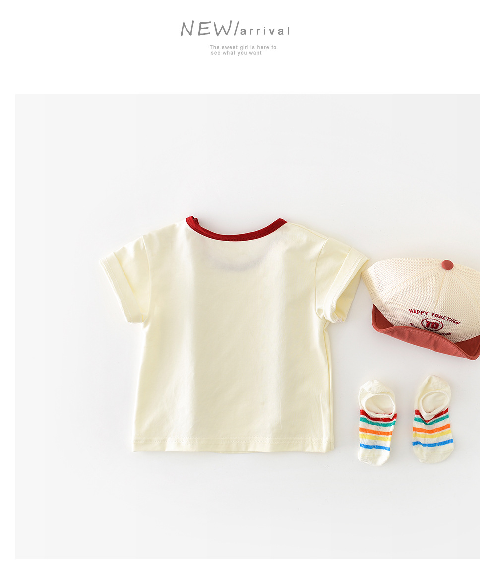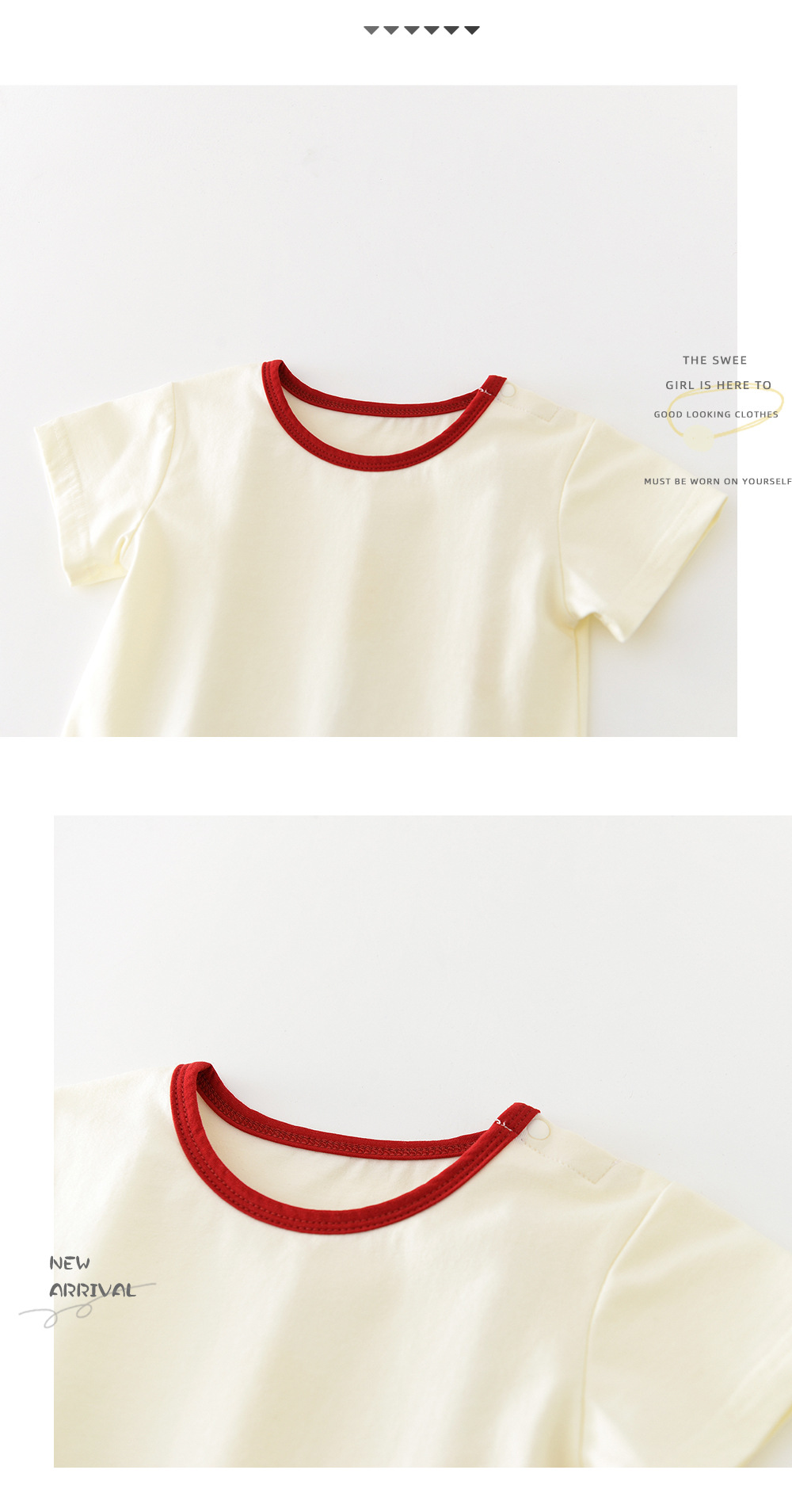 Yueji 2025 여름 어린이 간단한 오픈 어깨 버클 베이스 셔츠 아기 어린이 올 매치 솔리드 컬러 반팔 티셔츠 52577스토어 가기