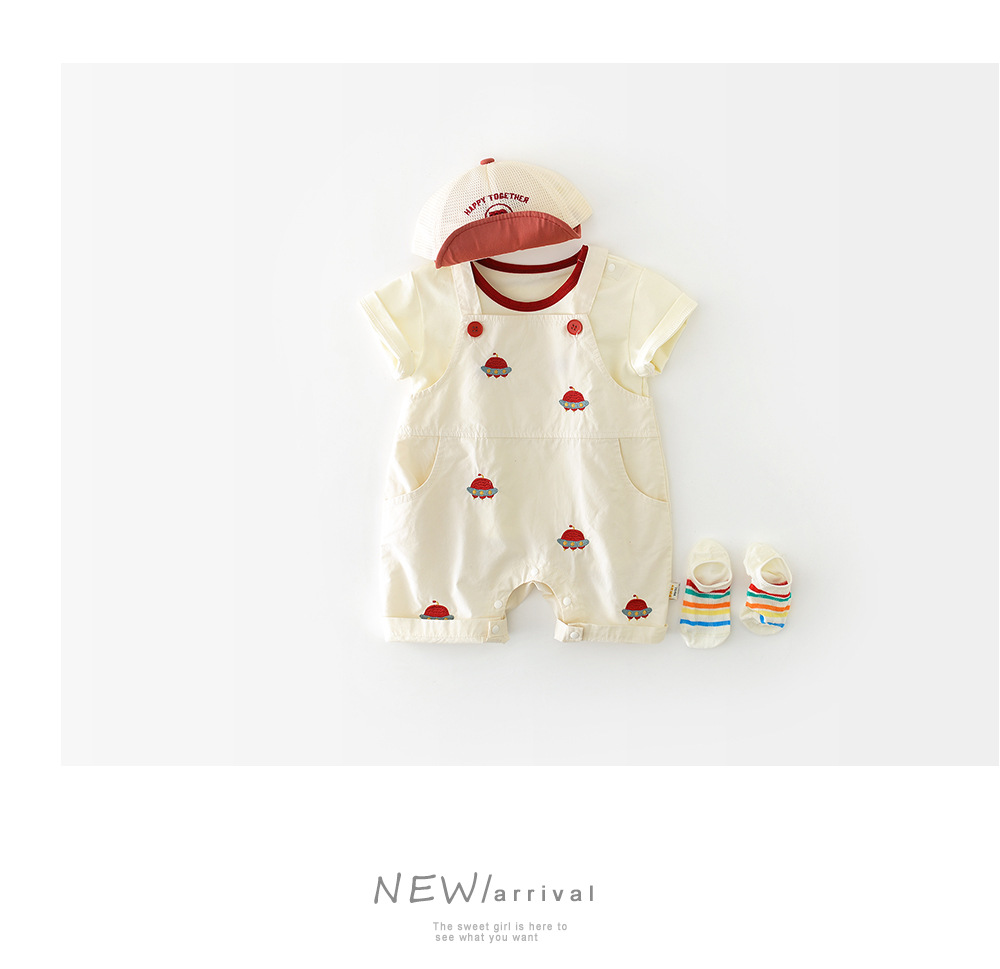 2025秋季新款儿童卡通连身衣 新生儿条纹脱卸领长袖爬服53566