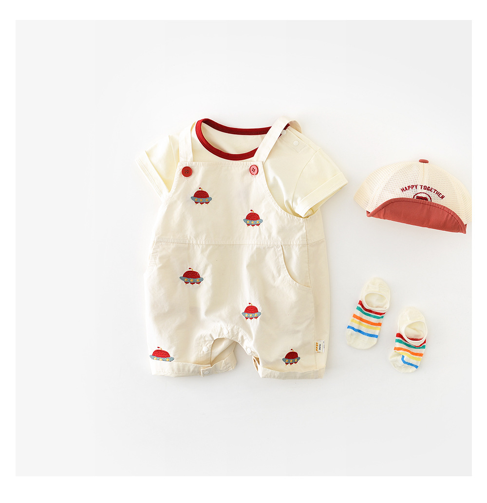 2025春季韩版宝宝卡通刺绣背带裤 男女童小狗公仔大口袋裤子51039