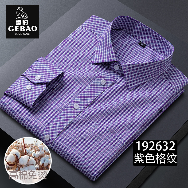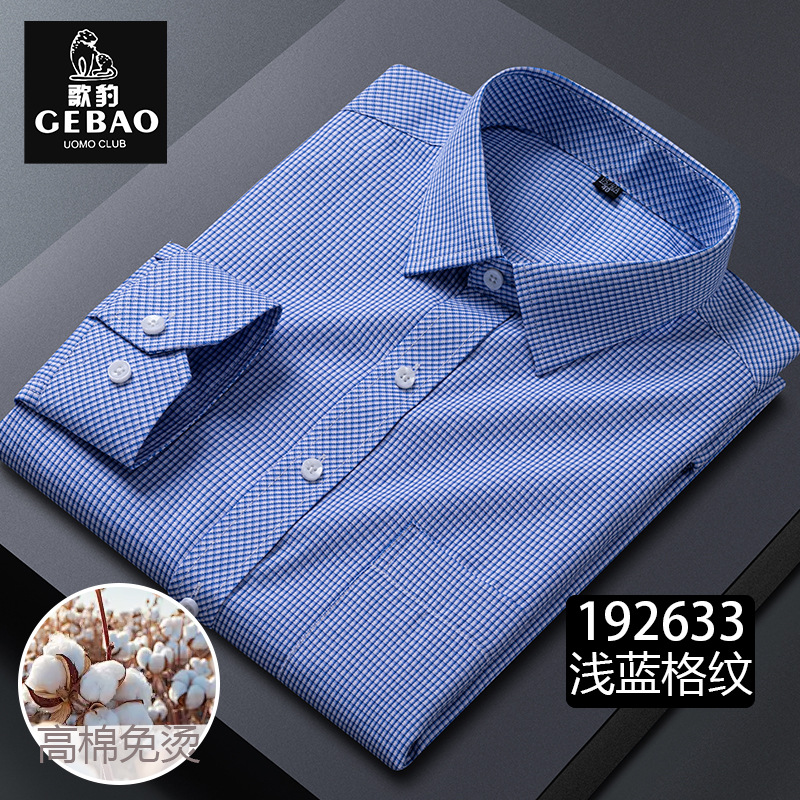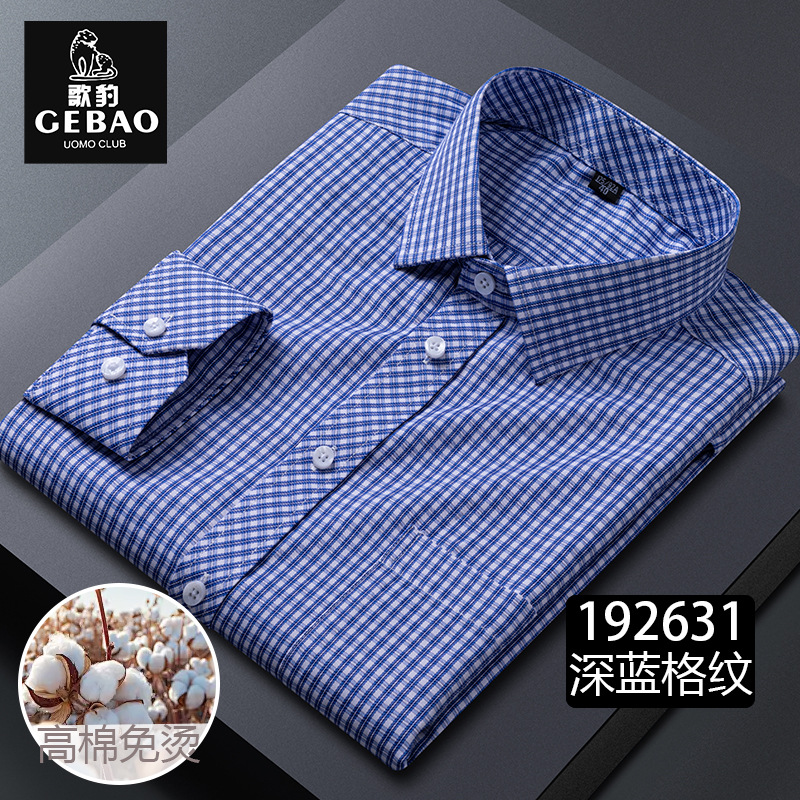 2025 봄과 가을 남자의 긴 소매 격자 중년 비즈니스 광장 칼라 캐주얼 비 다림질 쉬운 가공 재고 셔츠스토어 가기