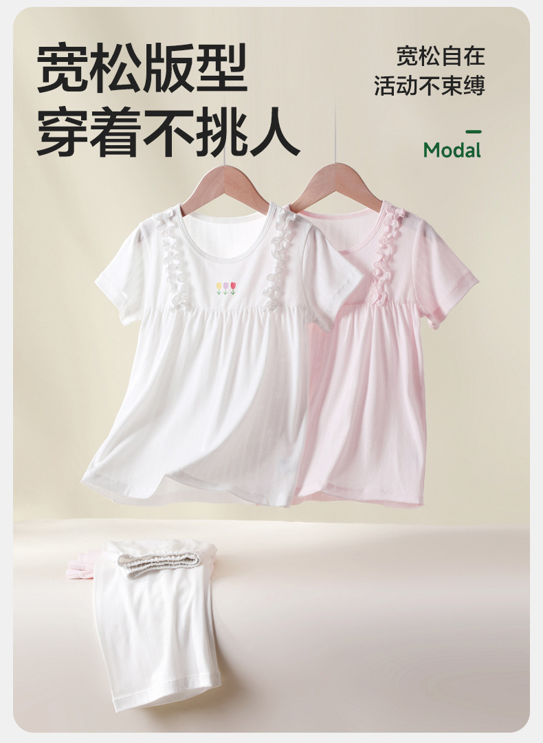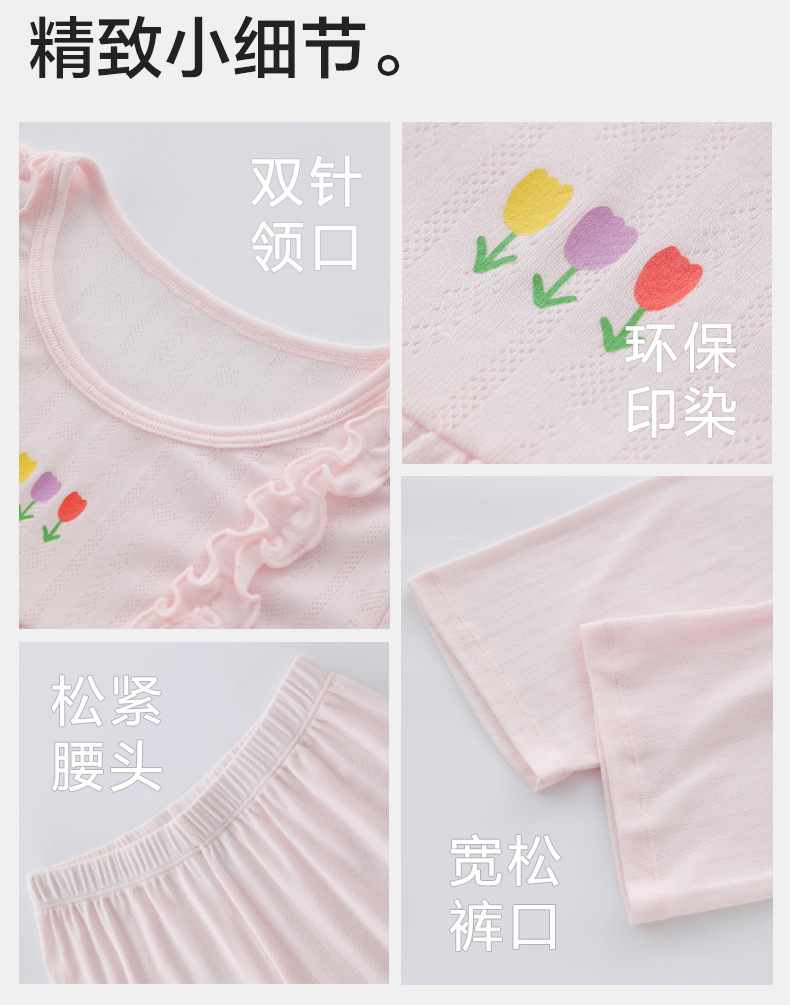 25 년 여름 소녀 홈 의류 세트 클래스 A 어린이 Lyocell 자카드 메쉬 파자마 짧은 소매 에어컨 의류스토어 가기