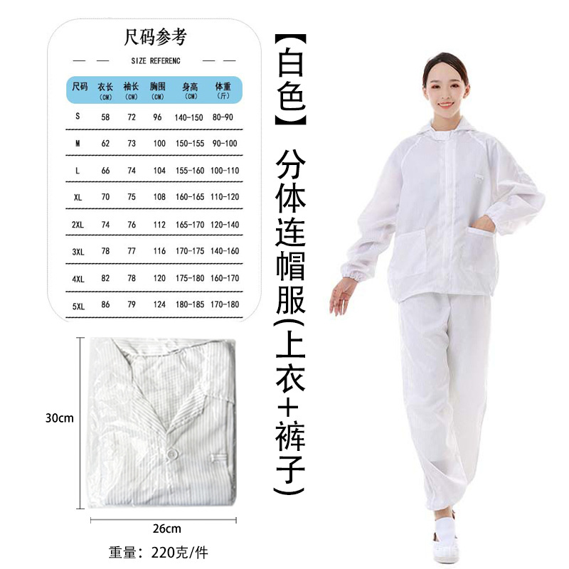 • 4XL, 흰색 후드 슈트(상의+바지)