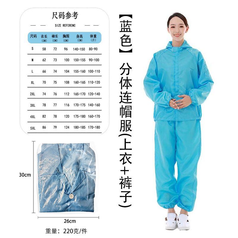 파란색 정전기 방지 후드 분할 옷 먼지없는 작업장 세트 작업복 유니섹스 분할 먼지 방지 깨끗한 옷스토어 가기