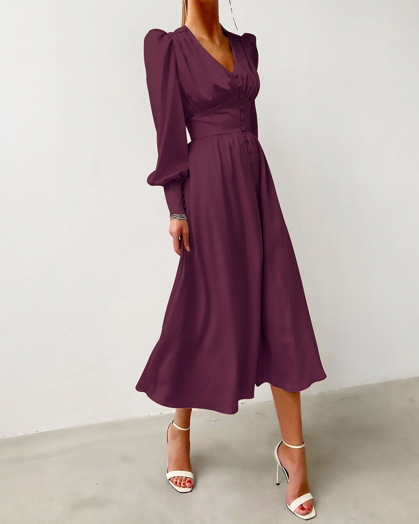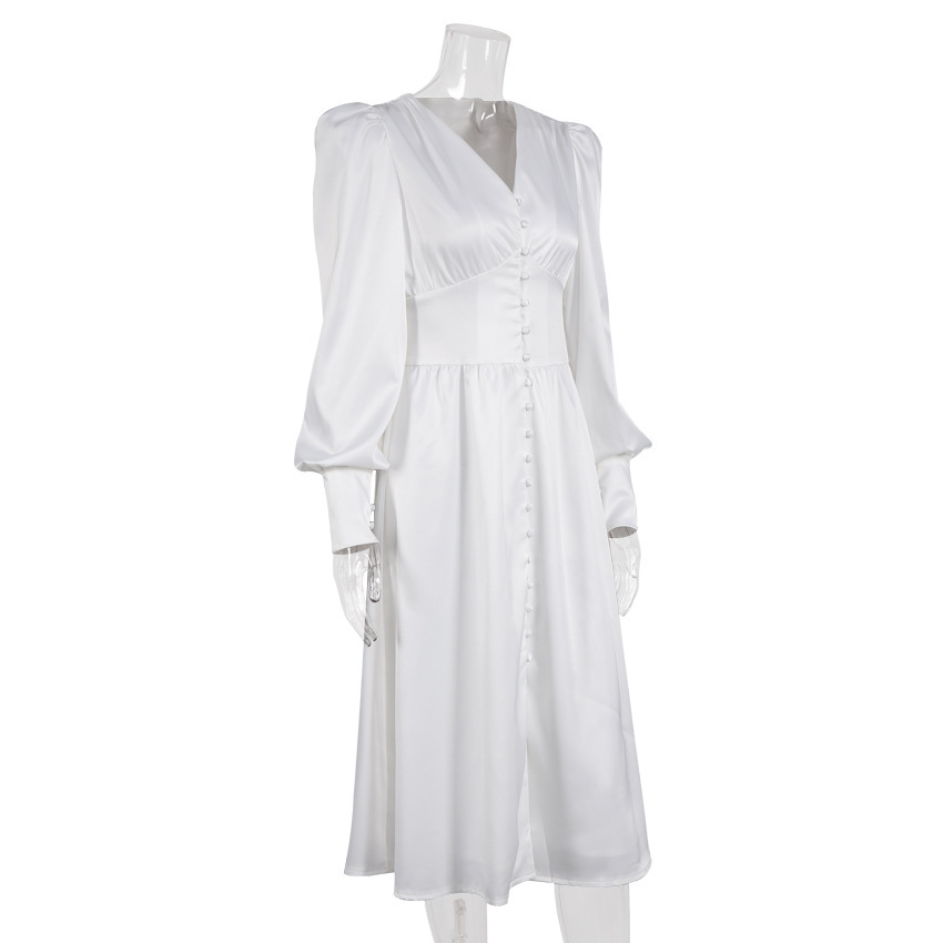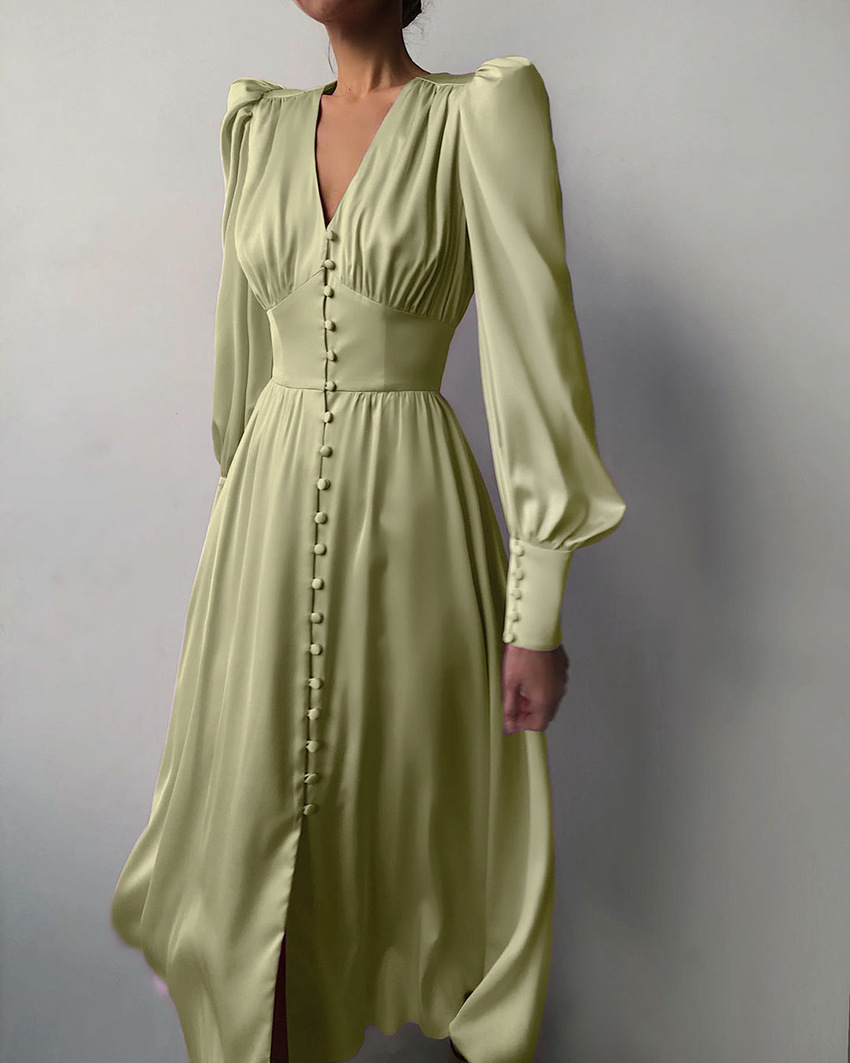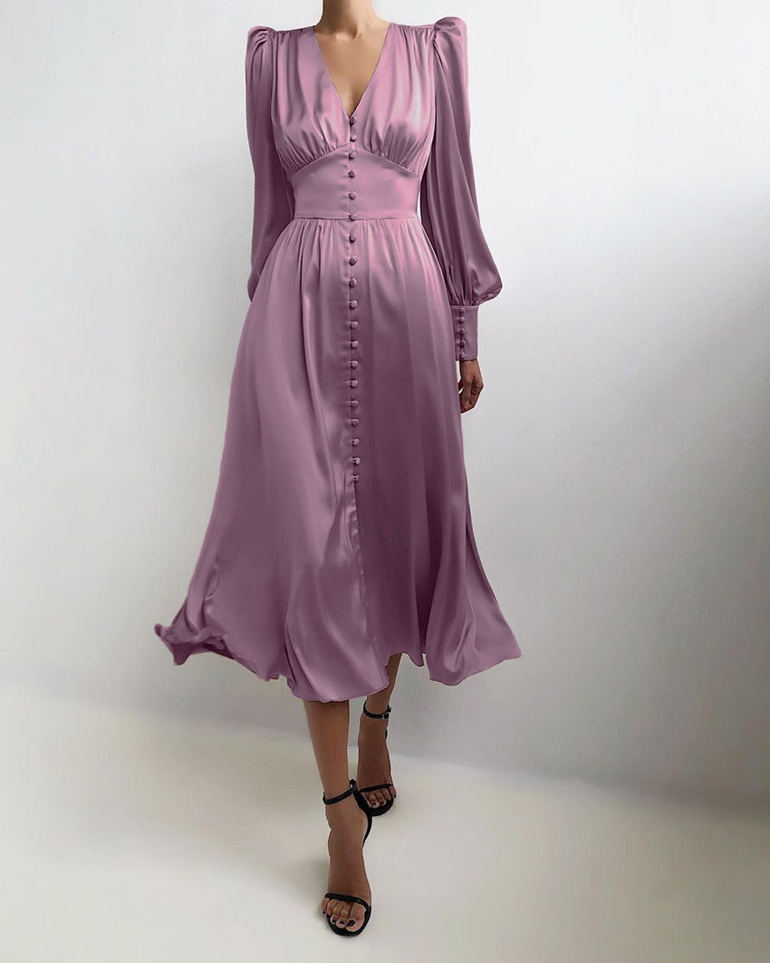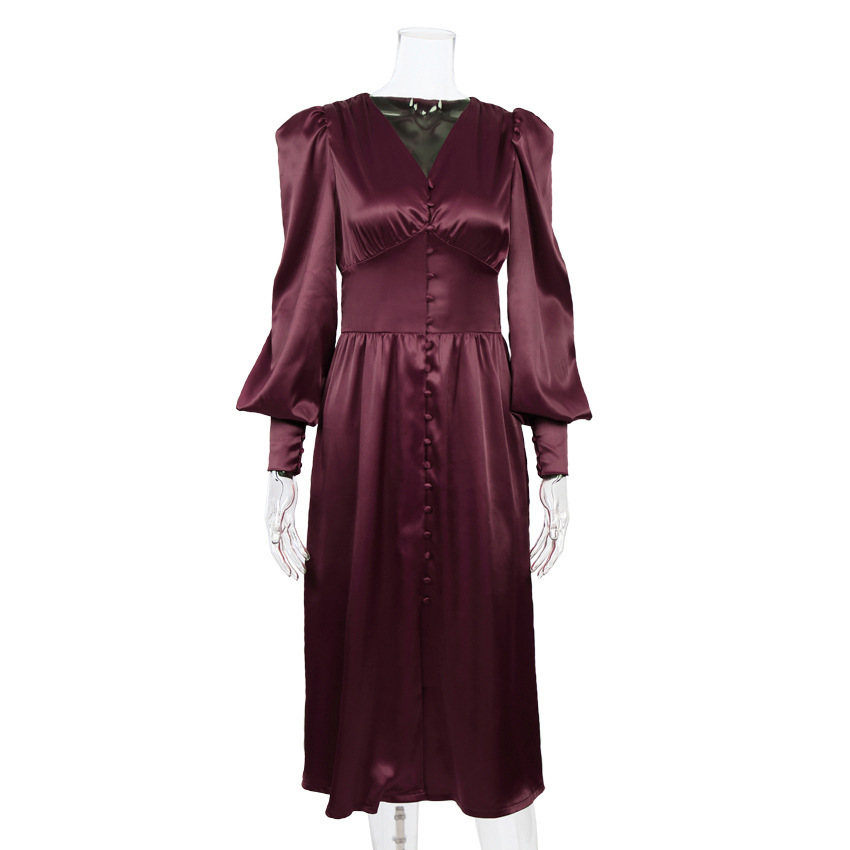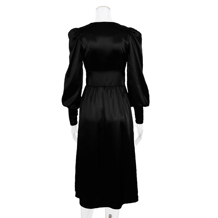 2025 가을과 겨울 여성의 유럽과 미국의 긴 원피스 V-넥 국경 뜨거운 대외 무역 새틴 코트 허리 레트로 원피스 여성스토어 가기