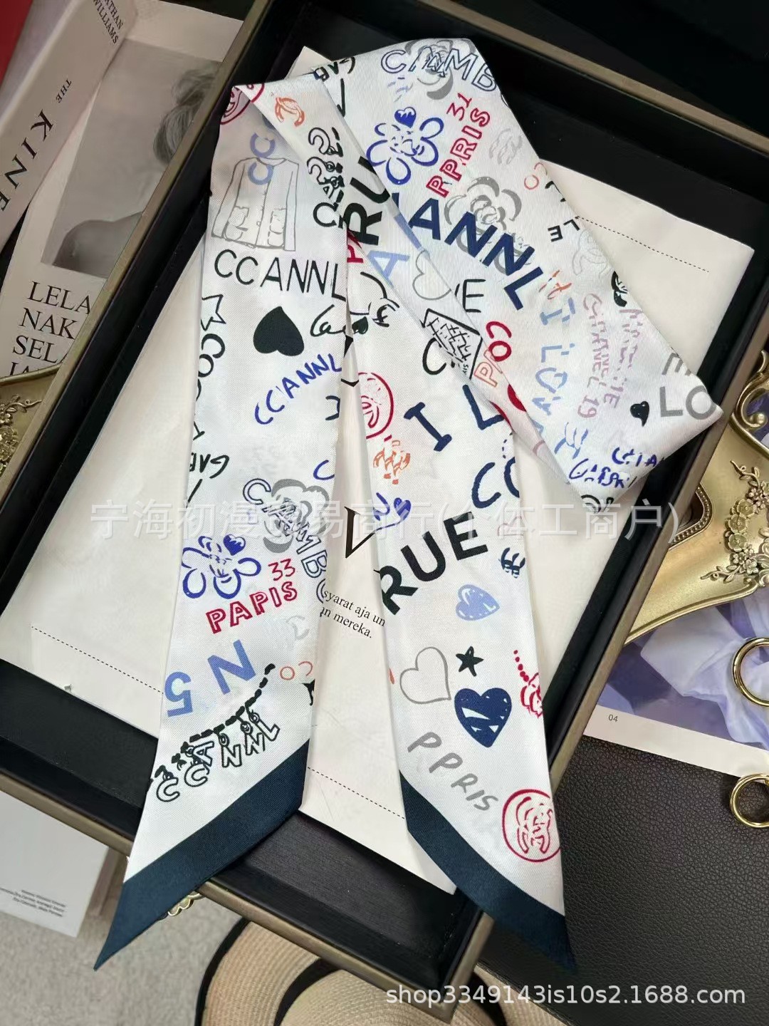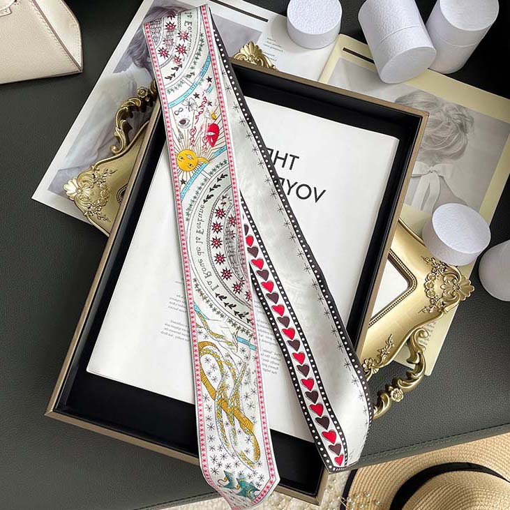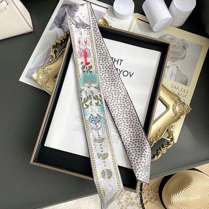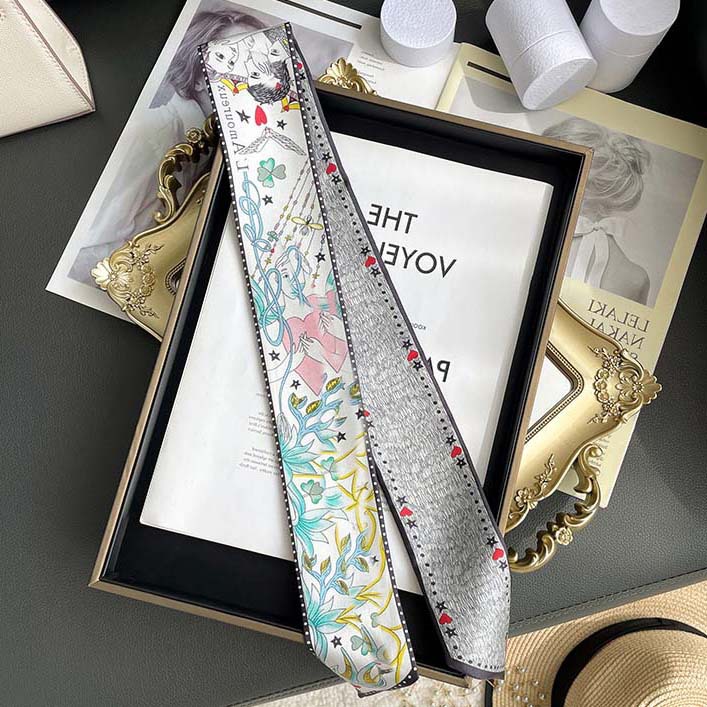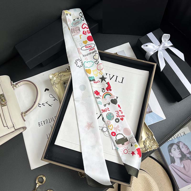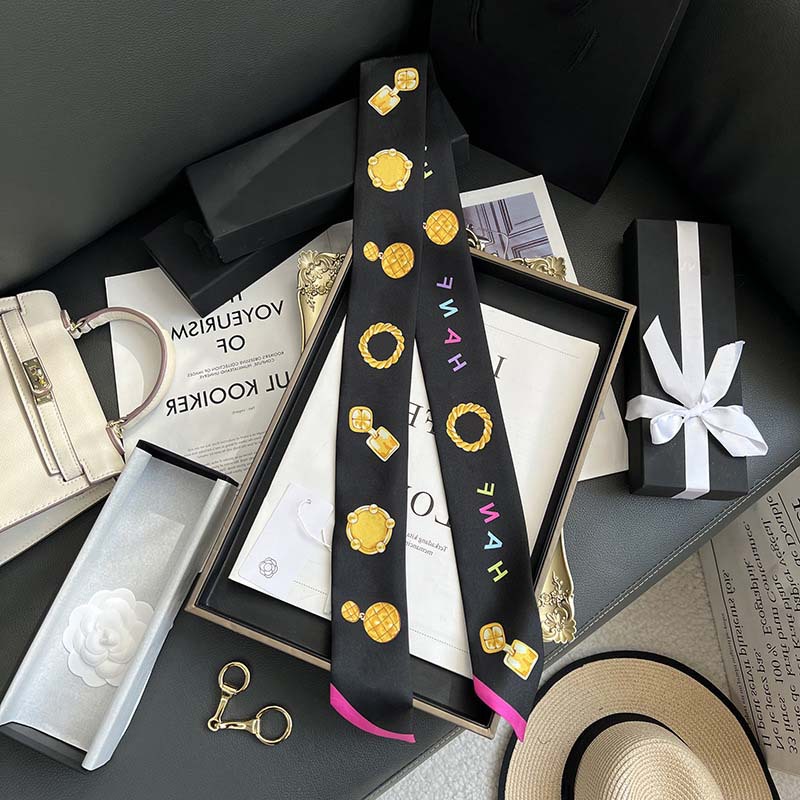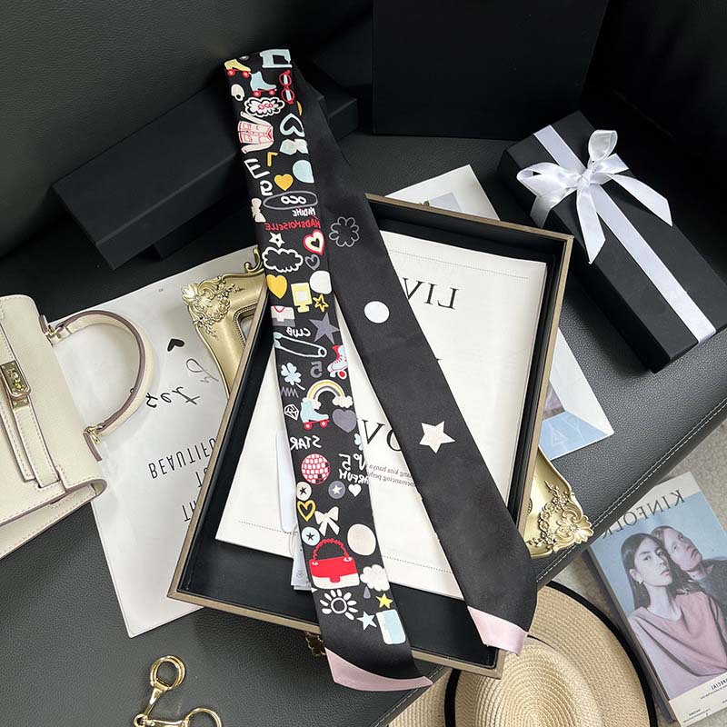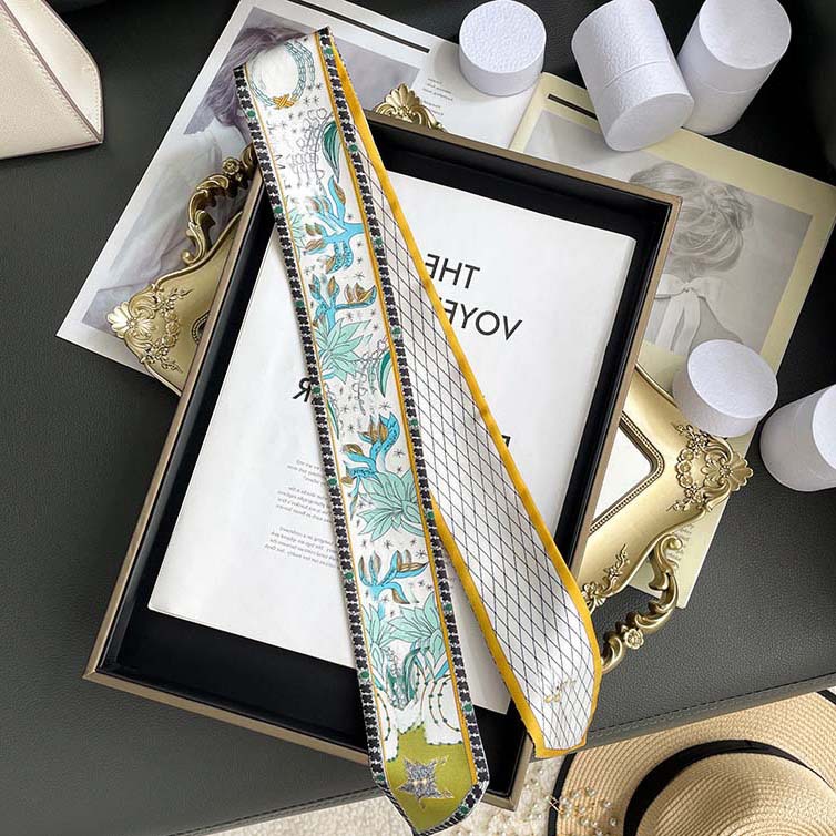 D 하이 버전 18 Mmi 실크 스카프 넥타이 팩 리본 얇은 좁은 긴 머리 밴드 장식 작은 스카프 정글 동물 H스토어 가기