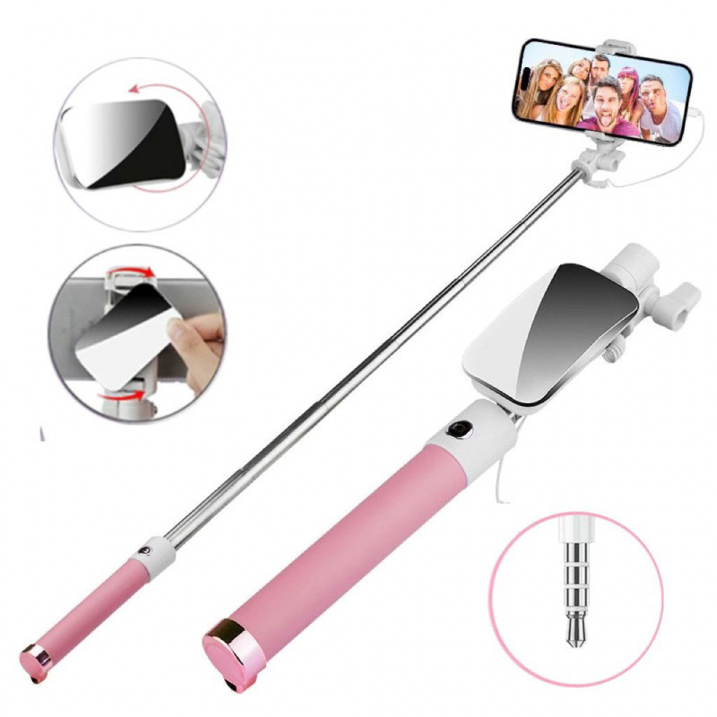 • 핑크(대형 거울 셀카봉) 헤드폰 잭 라운드 헤드