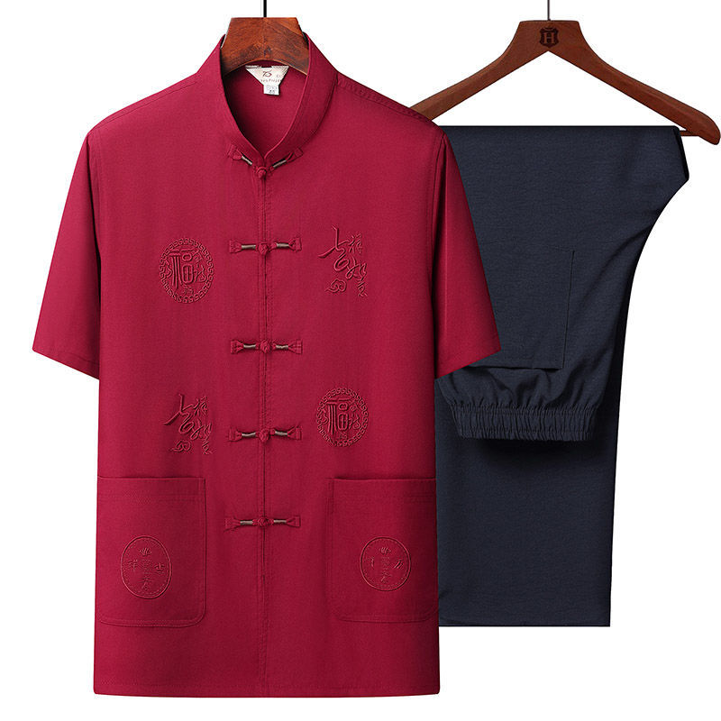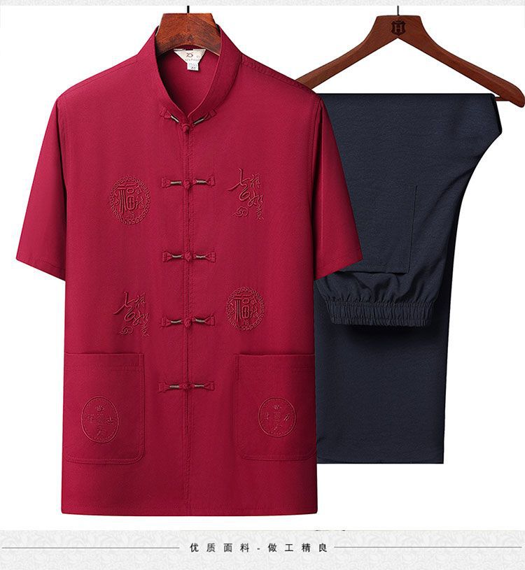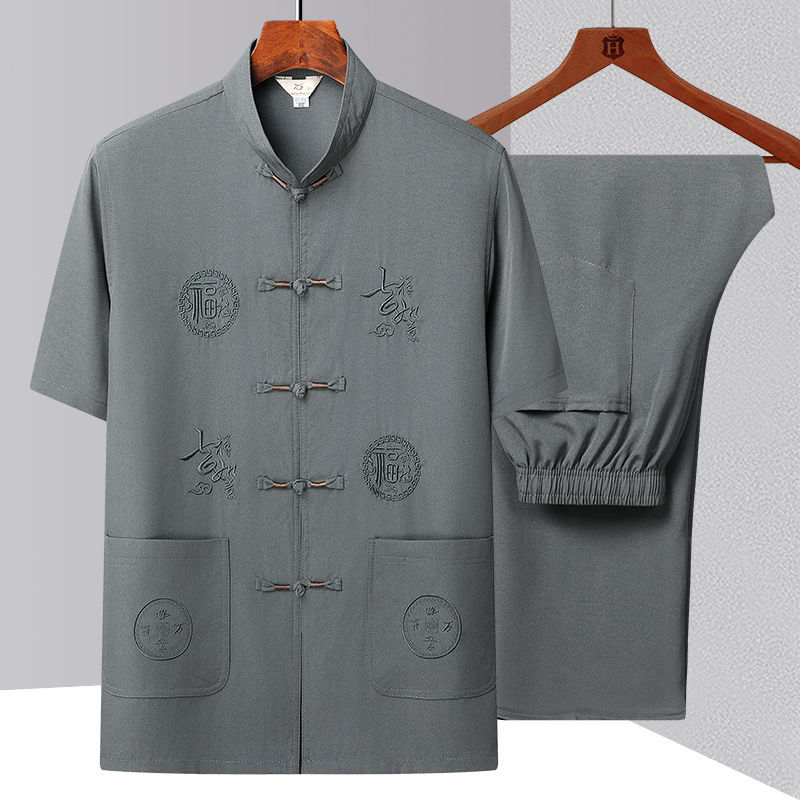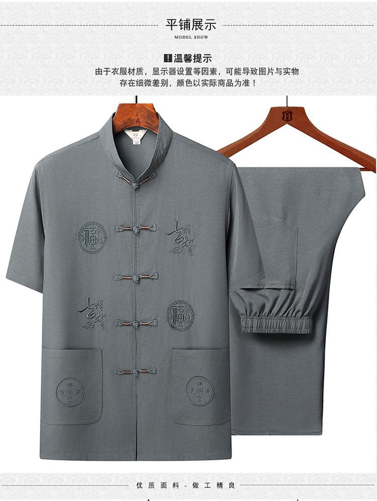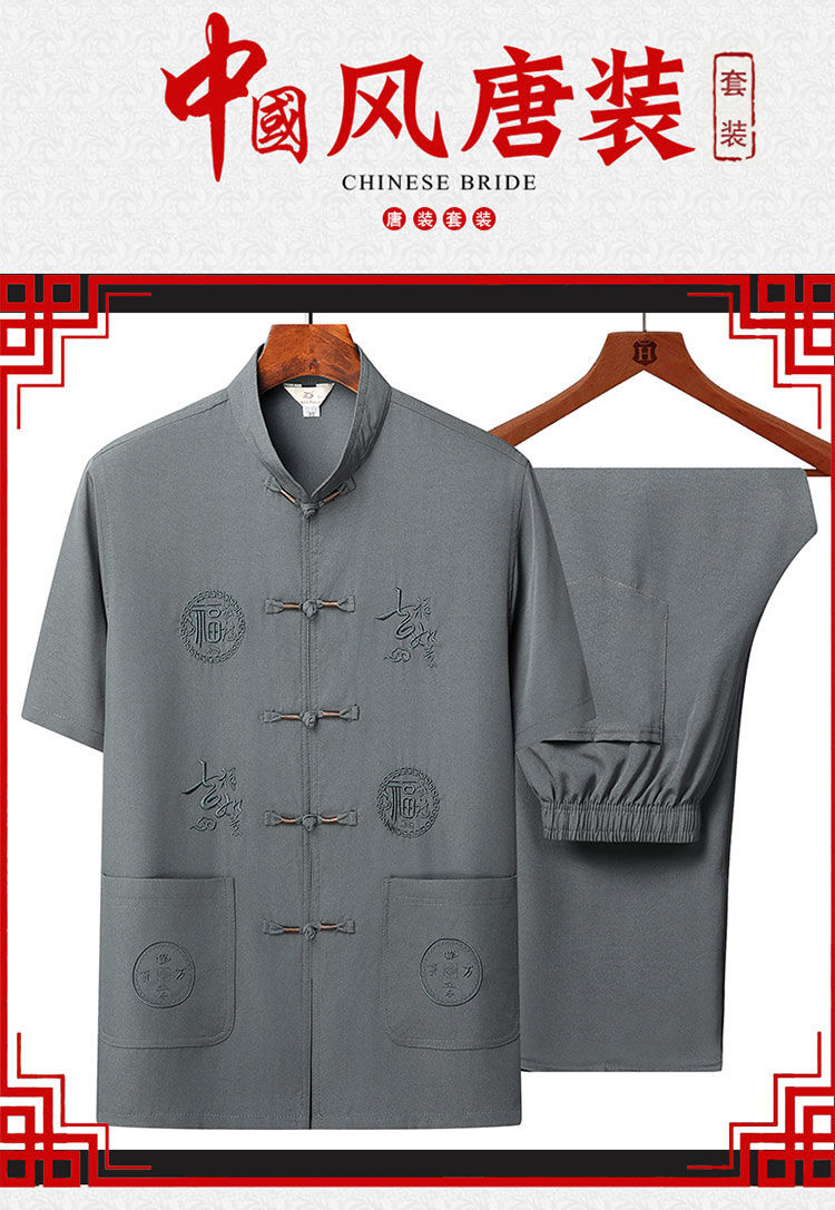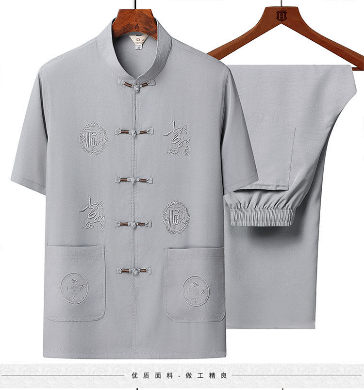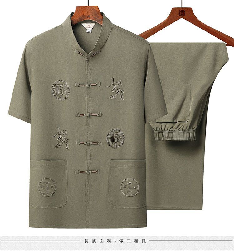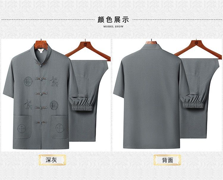 중년 및 노인 당나라 옷 남성 아빠의 여름 린넨 세트 중국 스타일 할아버지의 노인을위한 얇은 느슨한 중국 스타일 옷스토어 가기